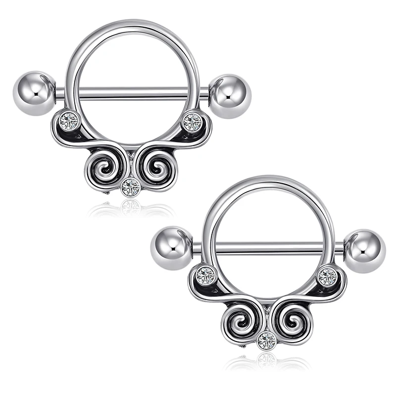 Кольцо для сосков элегантное из нержавеющей стали 316L с фианитом, ...