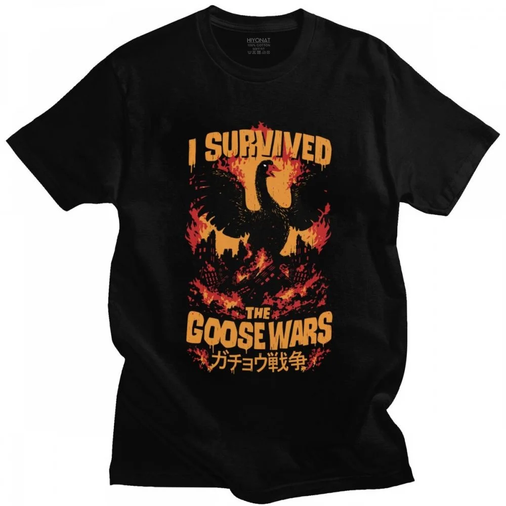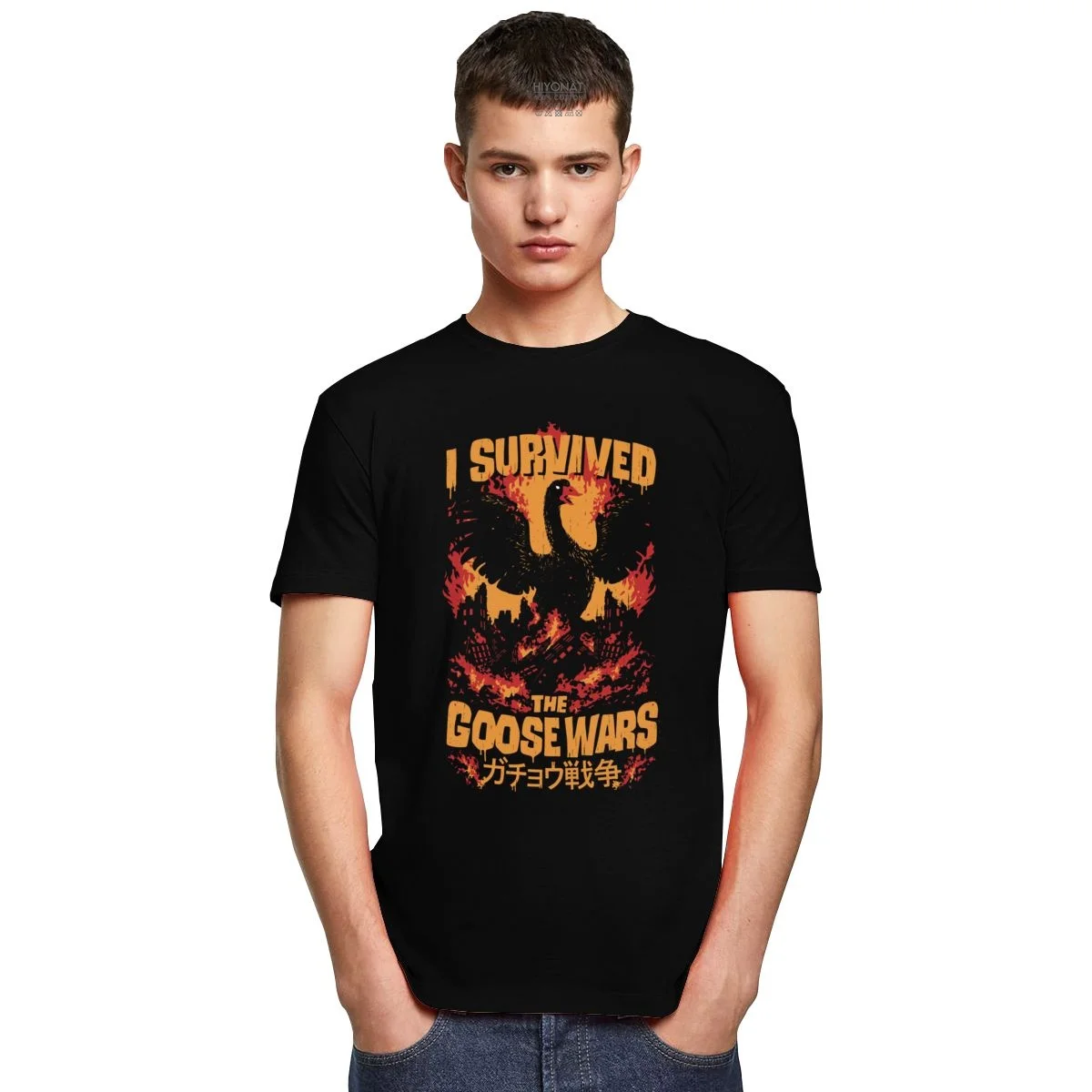 Модная мужская футболка с коротким рукавом, 100% хлопок, Повседневная футболка с вырезом лодочкой и гусиным принтом