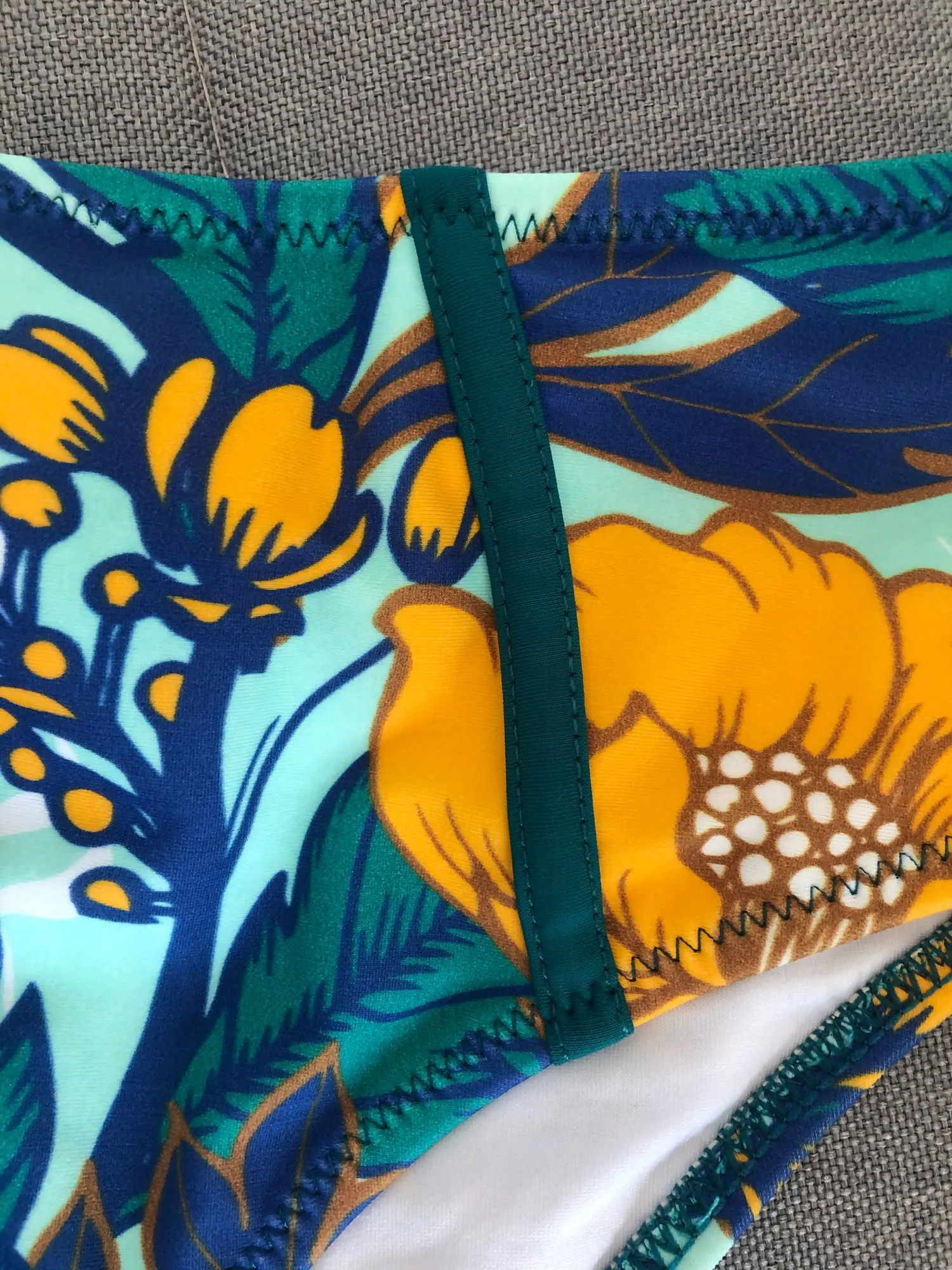 Этот купальник-бикини с цветочным и лиственным принтом средней высоты с умеренным дерзким покрытием и великолепным цветочным принтом.