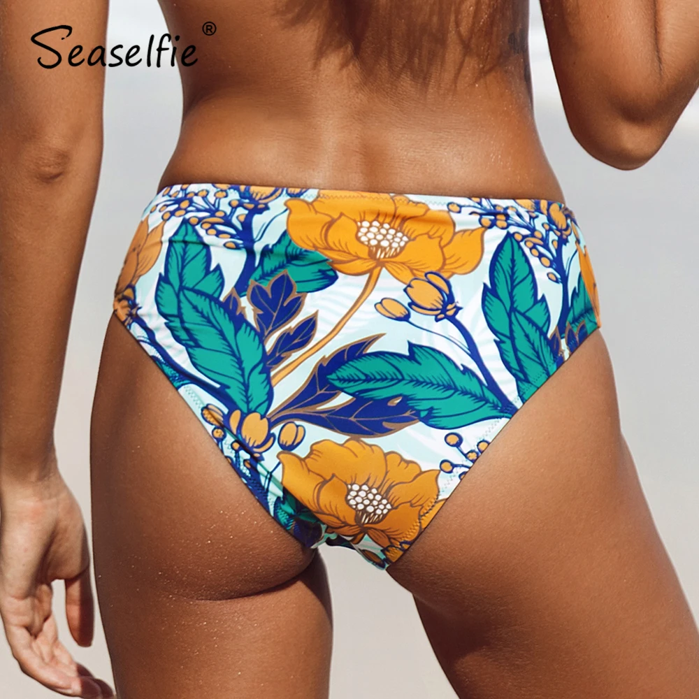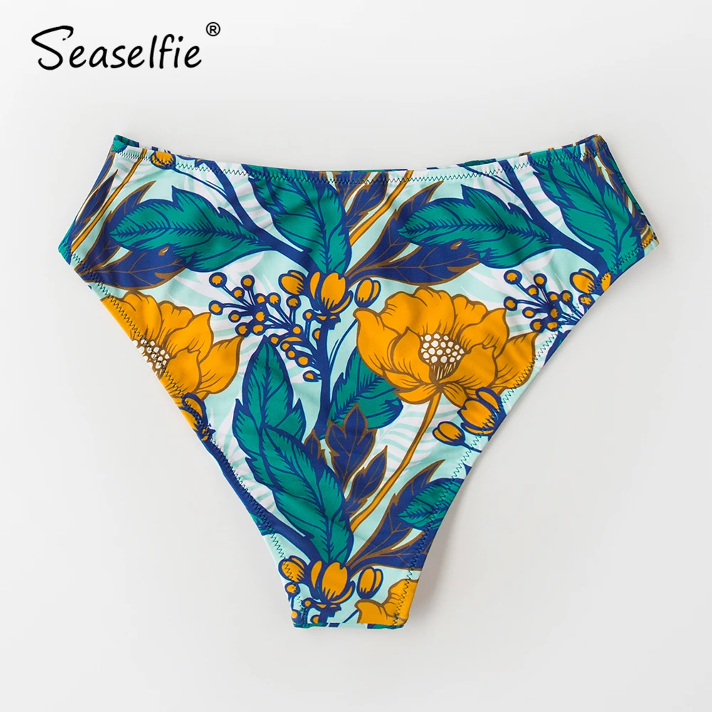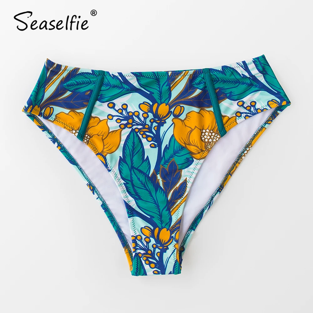 SEASELFIE сексуальное бикини с цветочным принтом и листьями со средней талией, женские трусики, женские трусики с раздельными листьями 2022, одиночные шорты для плавания, купальный костюм