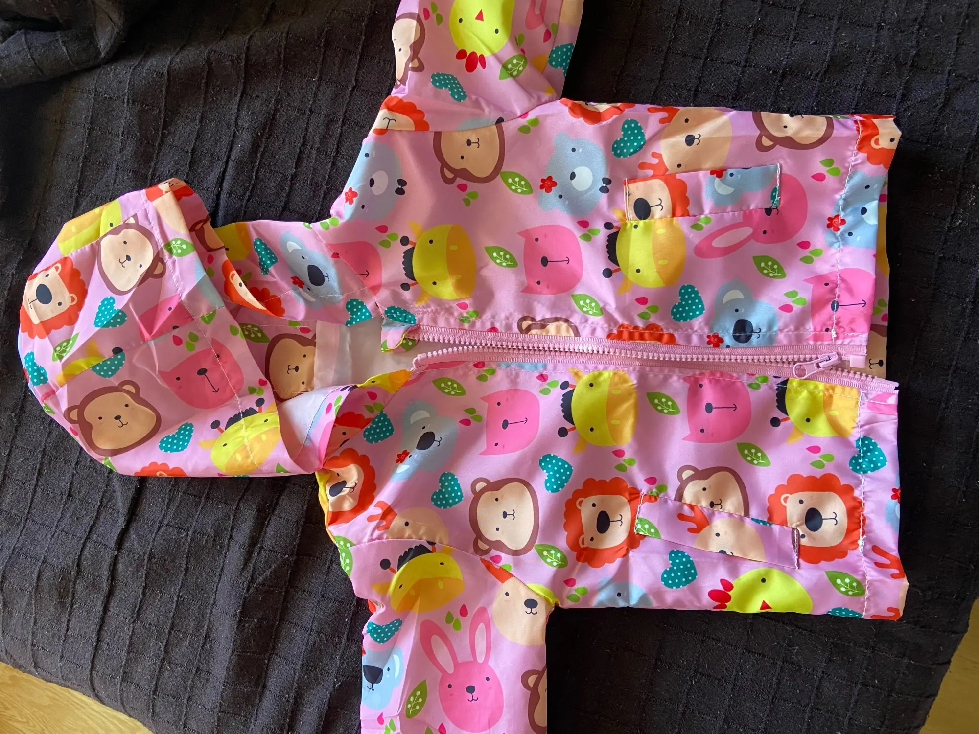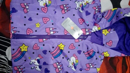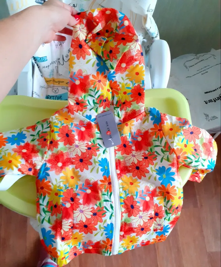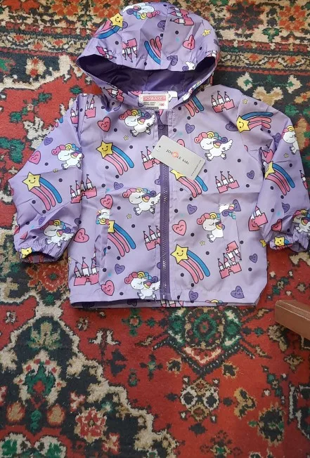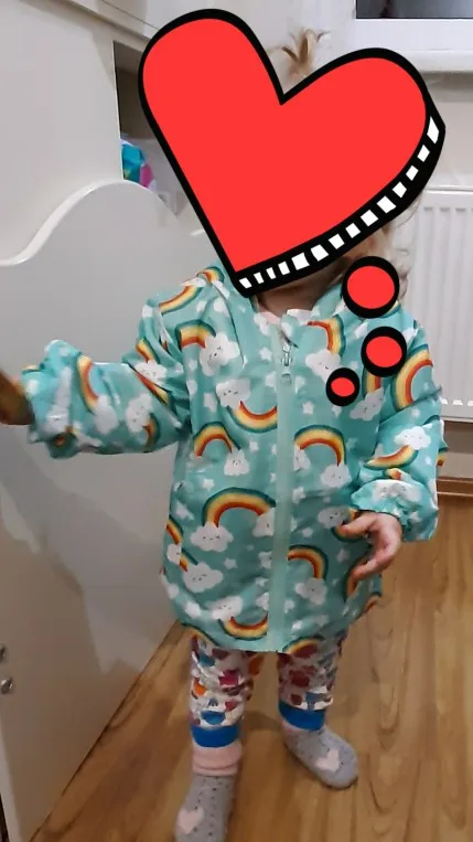 Курточка с милым рисунком за такую цену норм.Пришла за 16 дней.Конечно синтетика и плащёвка.Куча ниток и кривых строчек.Отрезала.))Дочке сейчас 9,5мес.Рост 72-73см. вес 9кг.Брала на конец весны и лето для прохладной погоды 3Т-90 рост по таблице больше.Нам сейчас почти как раз.Так что выбирайте по своим размерам и даже побольше.