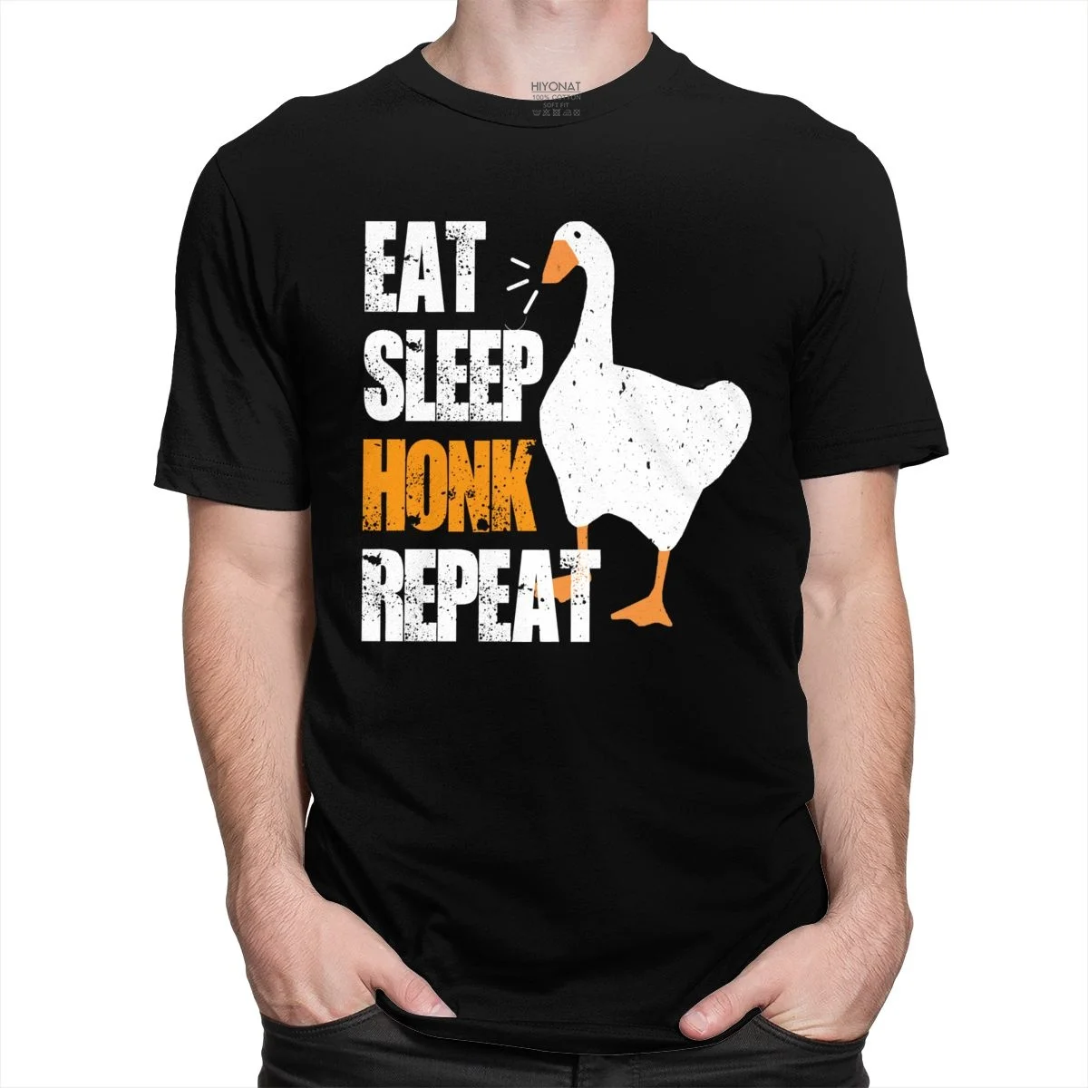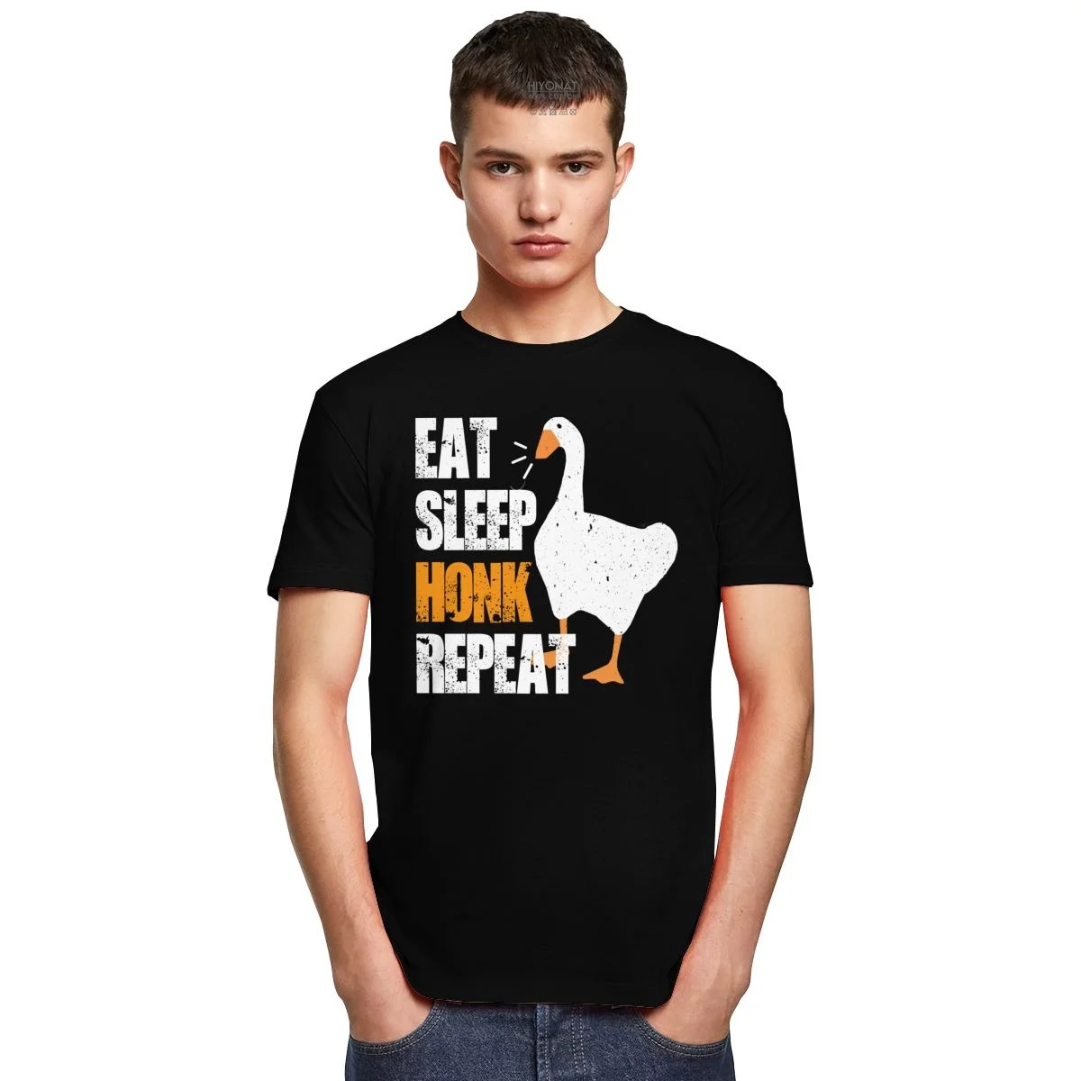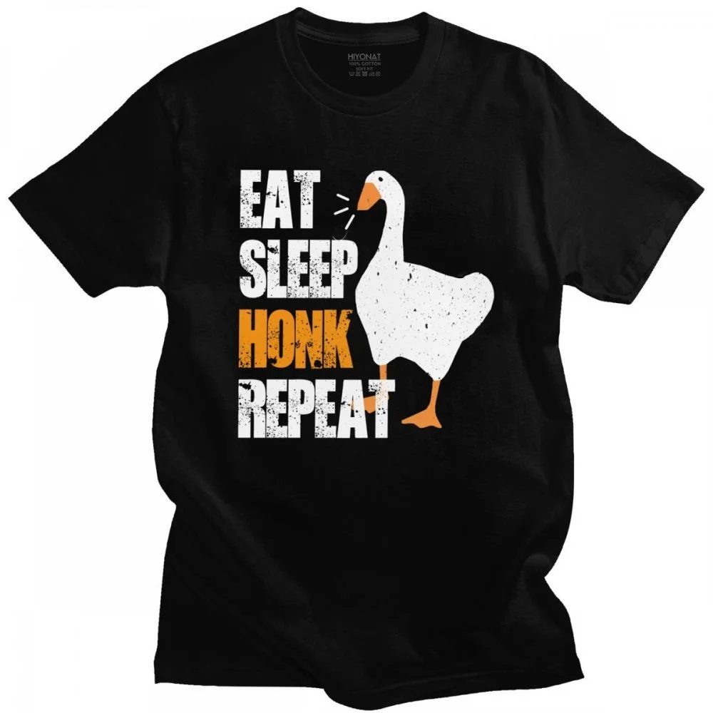 Футболка мужская с надписью Eat Sleep Honk, забавная хлопковая тенниска с коротким рукавом, повседневный топ с принтом игры без названия гуся
