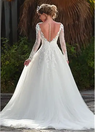 Женское свадебное платье с длинным рукавом, кружевное платье с аппл...