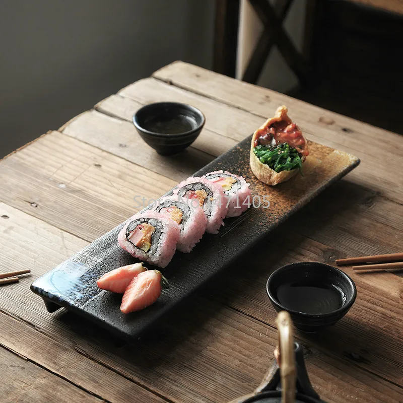 Прямоугольная тарелка для суши, стандартная холодная тарелка, плоская тарелка, японская керамическая тарелка, длинная тарелка для ресторана в стиле ретро