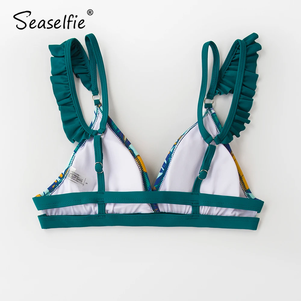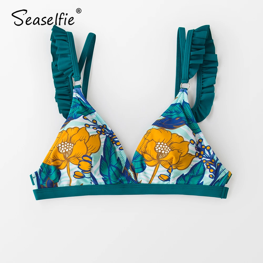 Женский бикини с оборками SEASELFIE, милый цветочный топ со съемными подушечками, Раздельный Топ, Женский однотонный бюстгальтер с мягкими чашечками, купальная Одежда для девочек, 2021