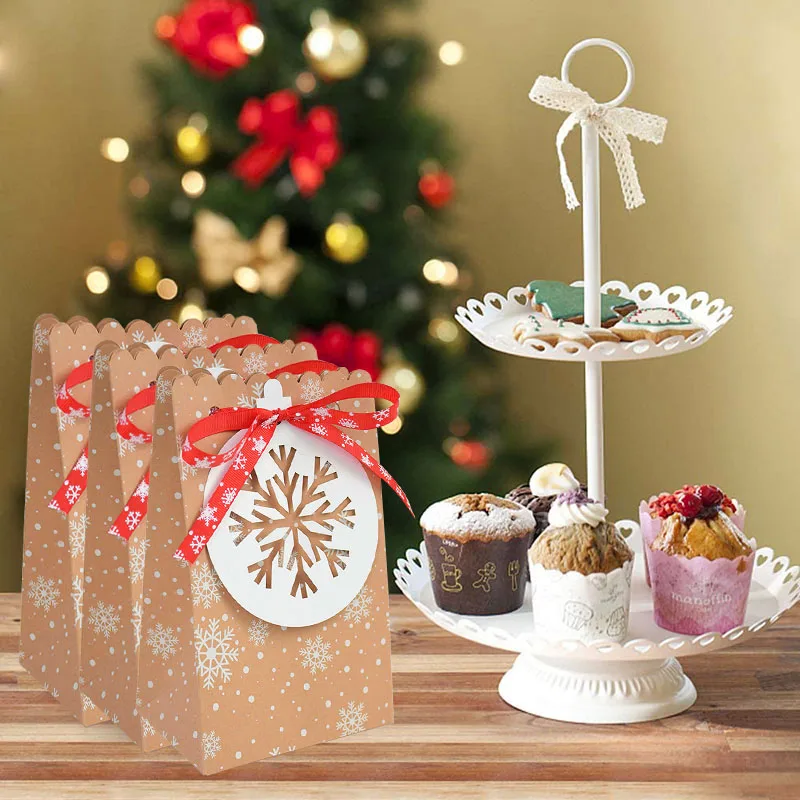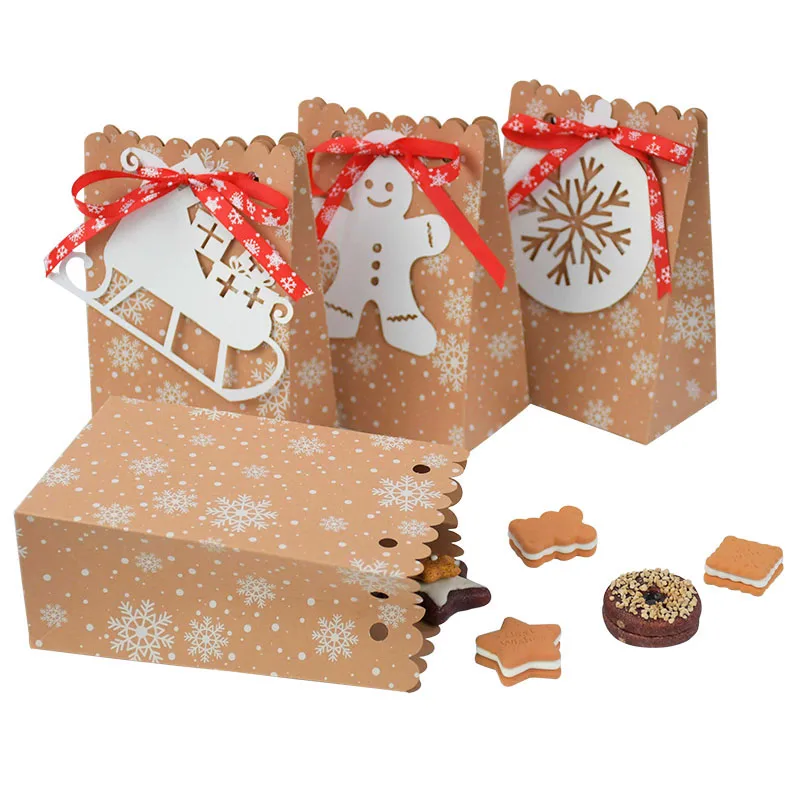 4 шт.лот DIY рождественские крафт-бумажные мешки Снеговик Белл чулок Снежинка бант конфетный мешоккоробка вечерние украшения для детского душа