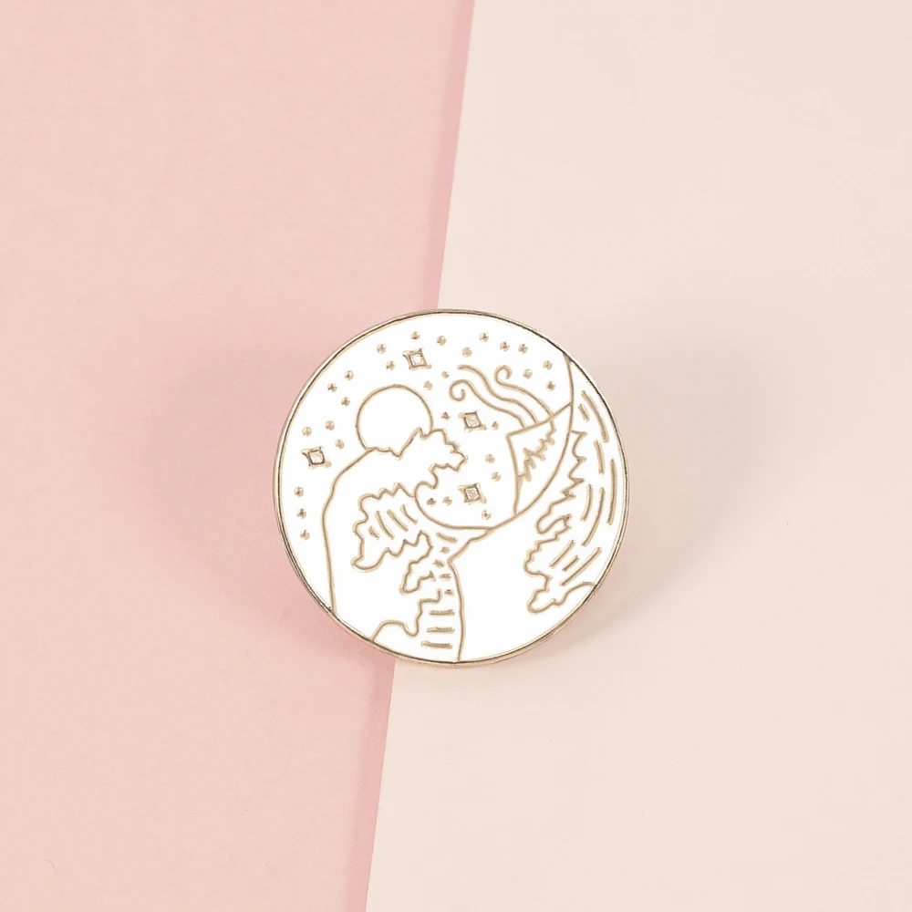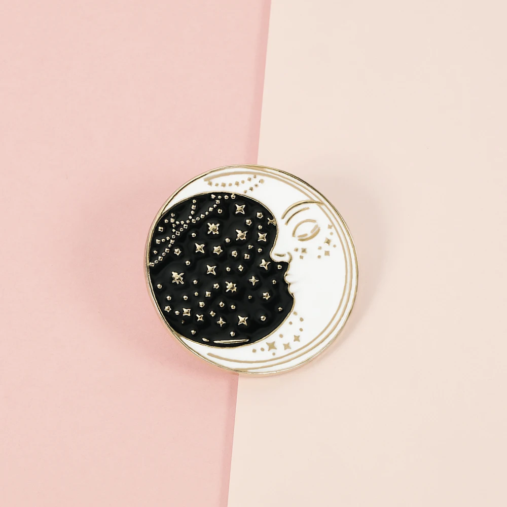 Мультяшные круглые Броши с изображением солнца, луны, звезд, морских волн, эмалированная булавка для сумки, одежды, булавка для лацкана, дневной и ночной значок, ювелирные изделия в подарок