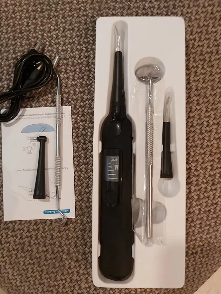 Я думаю, что этот продукт не нужен, потому что вибрация машины не удобна и не очищает зубной камень, вы только сломаете вам десны. Если у вас есть зубной камень, вам нужен только стальной крюк и зеркало, таким образом, быстрее, точно и дешевле! - Этот продукт не нужен, вибрация не комфортна и не быстро удаляет сковороду, вибрация заставит вас сломать десны. Если у вас есть сарро, вам просто нужен стальной крюк и зеркало, это более точно и экономично, чтобы сделать это вручную! Вибрация полезна только в электрической зубной щётке, чтобы не нарисовать сарро.