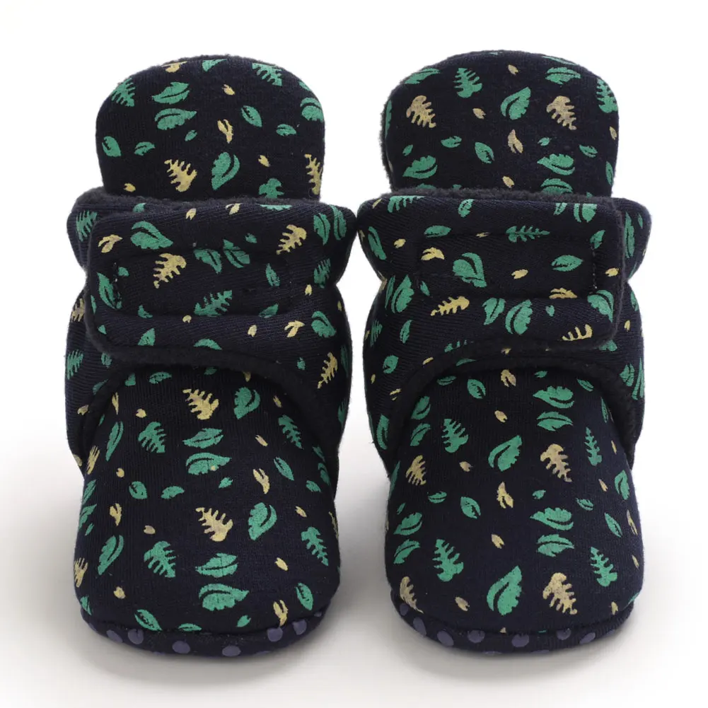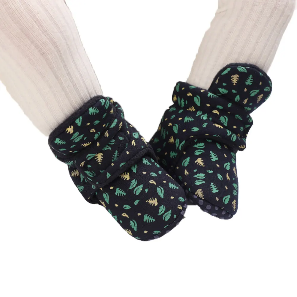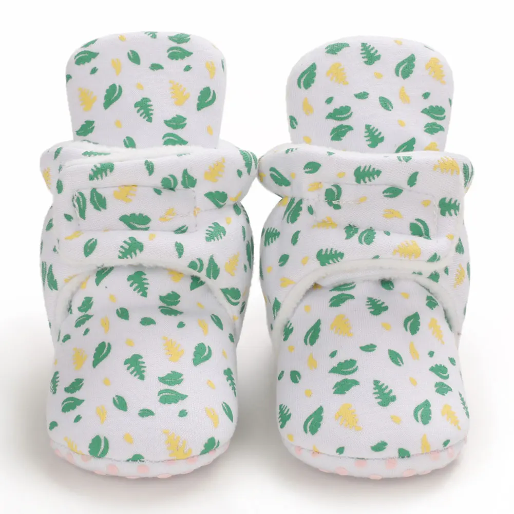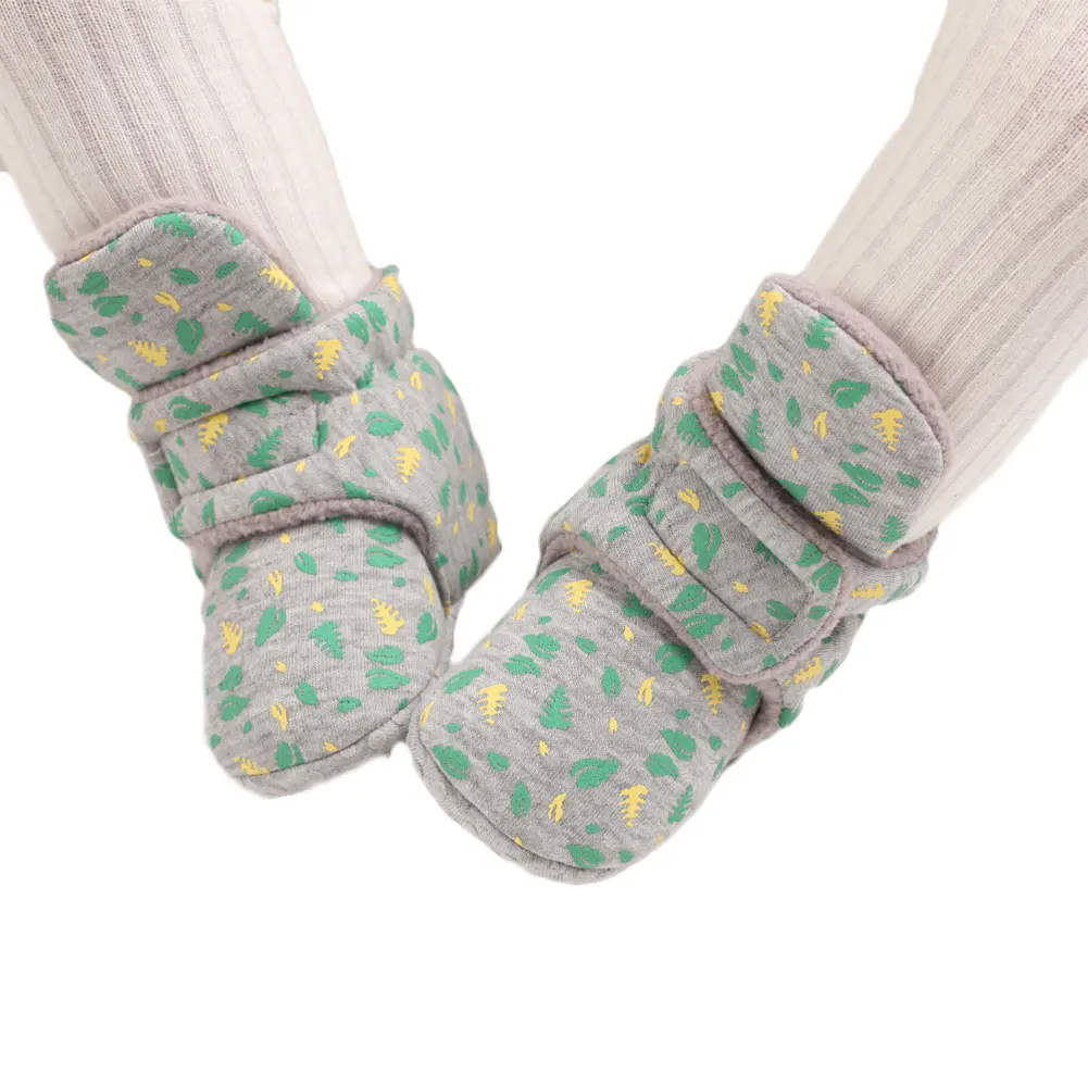 Ботиночки домашние детские, с рисунком листьев, якорей, мягкой подошвой
