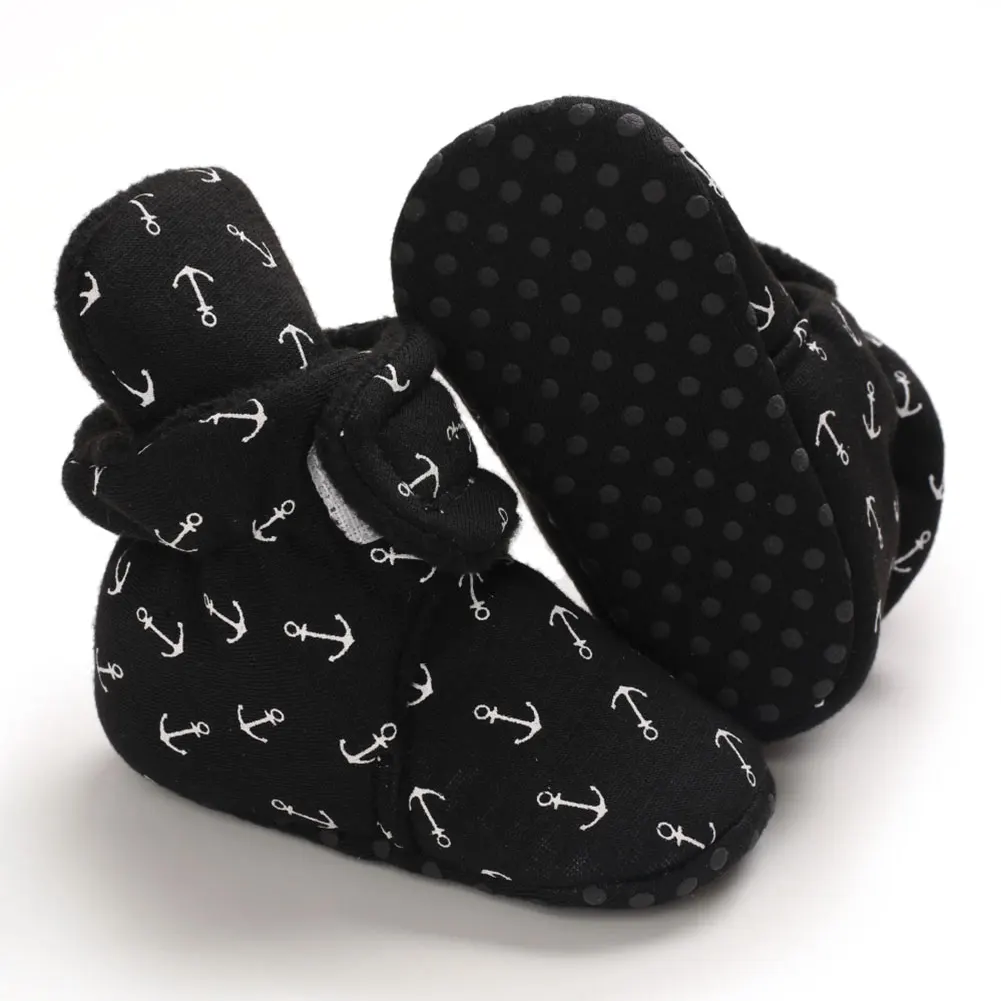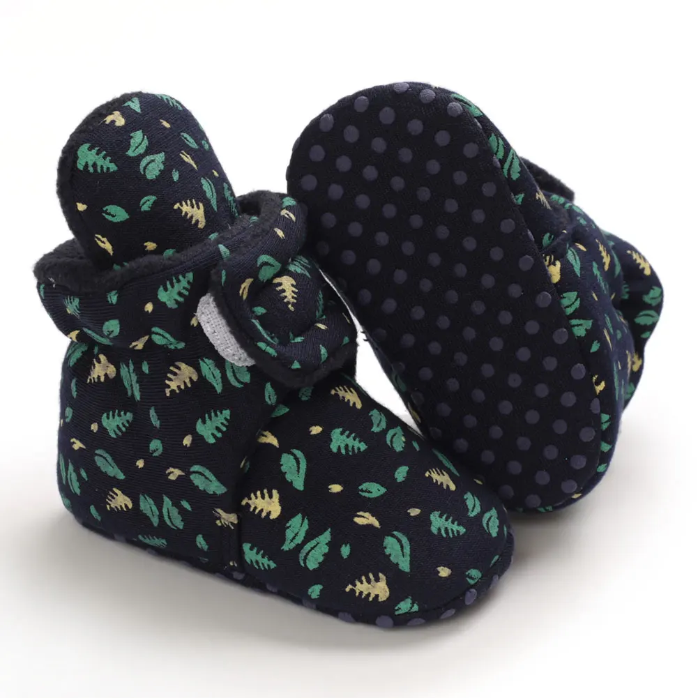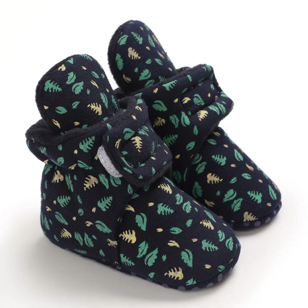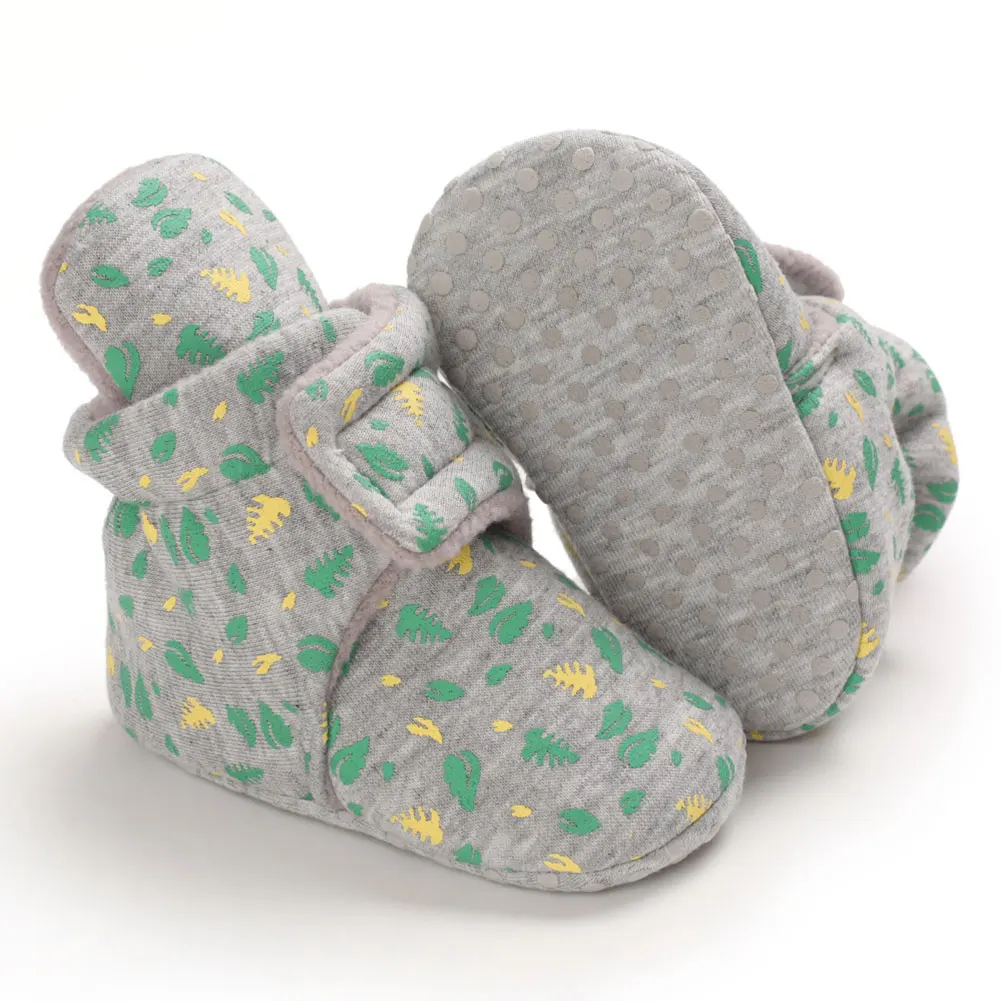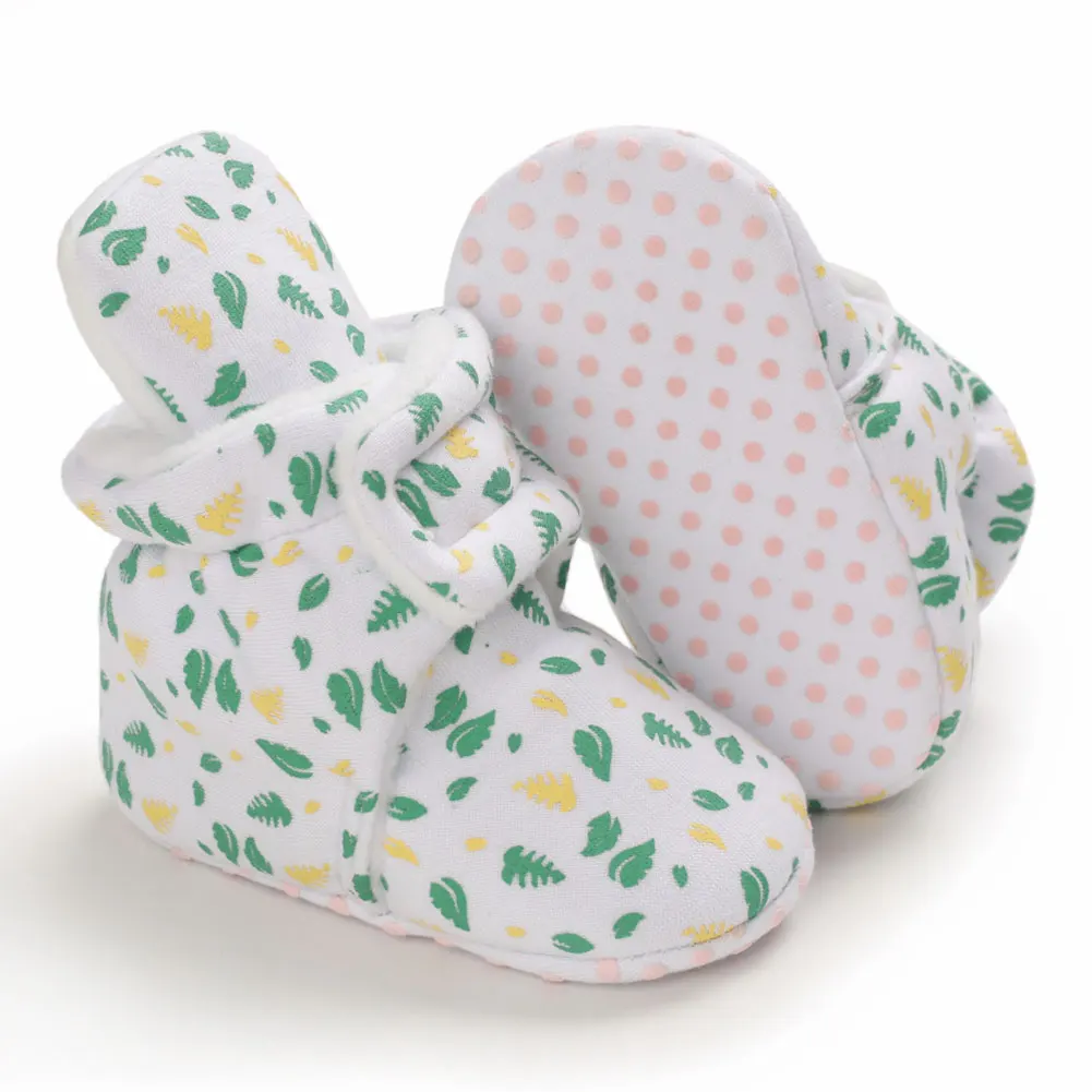 Ботиночки домашние детские, с рисунком листьев, якорей, мягкой подошвой
