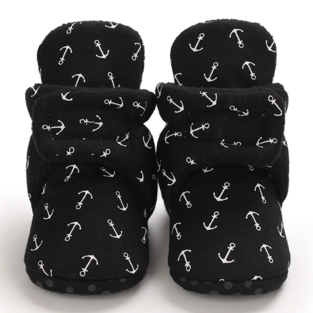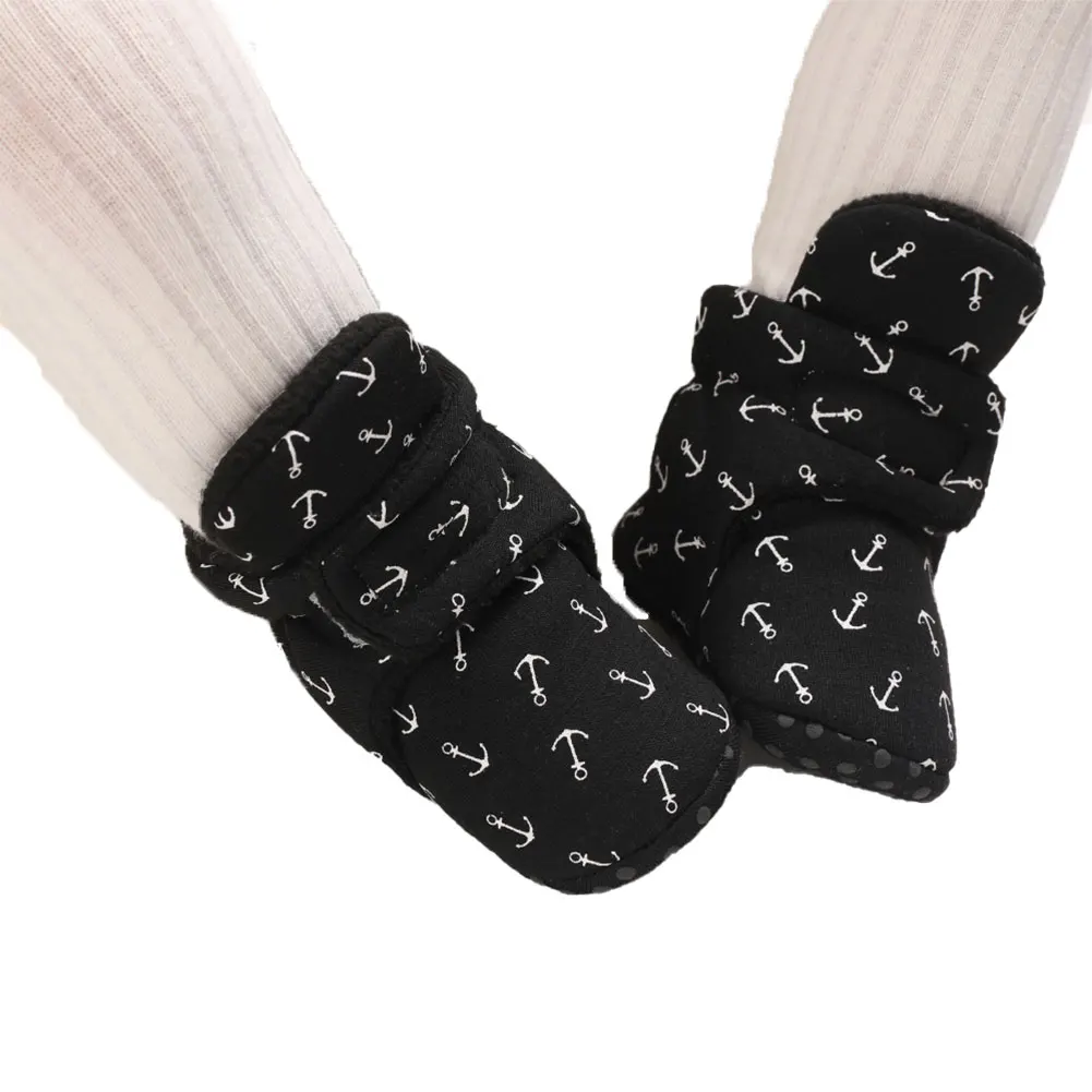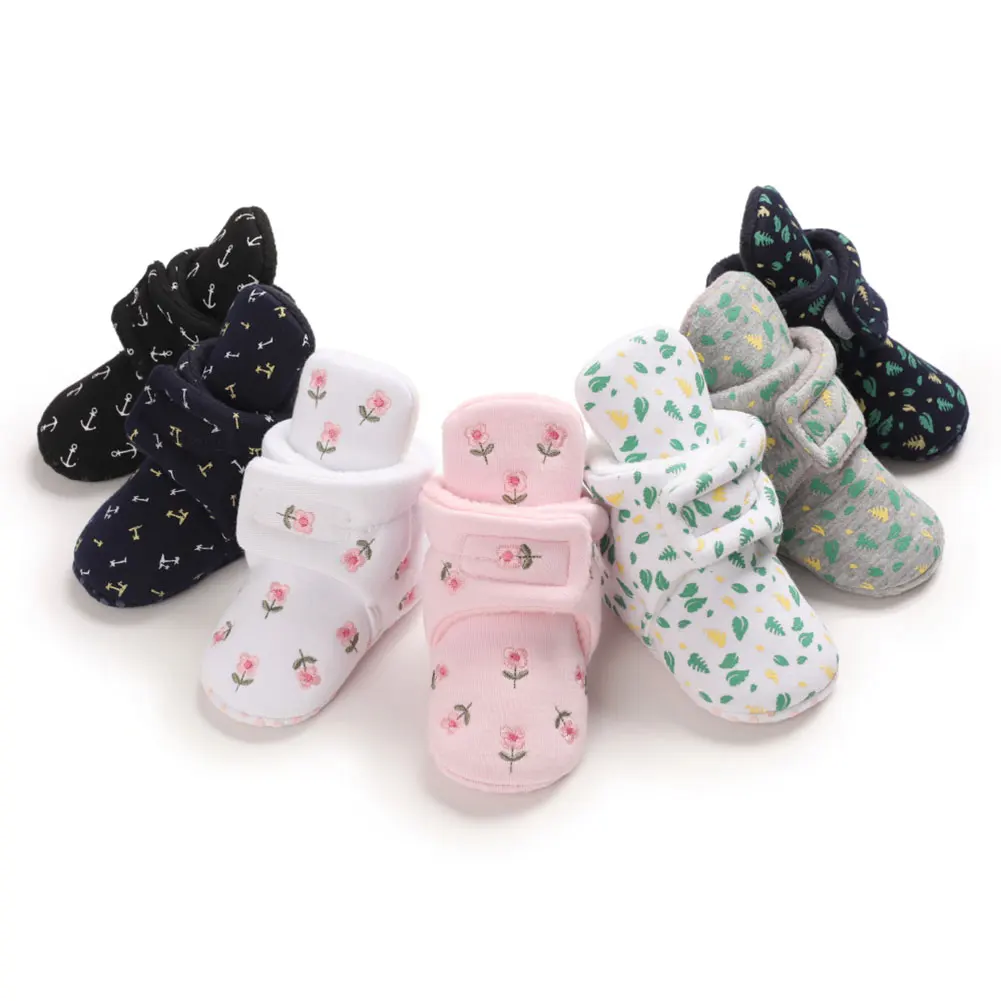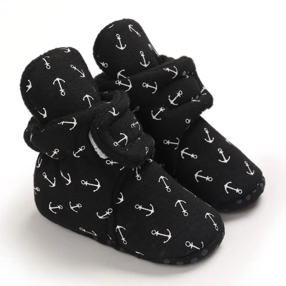 Ботиночки домашние детские, с рисунком листьев, якорей, мягкой подошвой