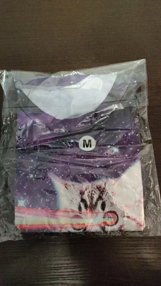 Симпатичная футболка, ткань супер тонкая и лёгкая синтетика. В Вологодскую обл. посылка дошла примерно за 1,5 месяца. Из бирок на футболке есть только размер. Печать, естественно, более мыльная и бледная, чем на фото товара, но и в принципе и так тоже есть некий шарм. Швы сделаны все хорошо кроме одного момента на фото (хз зачем строчку так рано обрывать) и ниточка 1 торчала, не критично. Брала брату в качестве подарка, в принципе дарить можно, не стыдно, покупкой довольна)