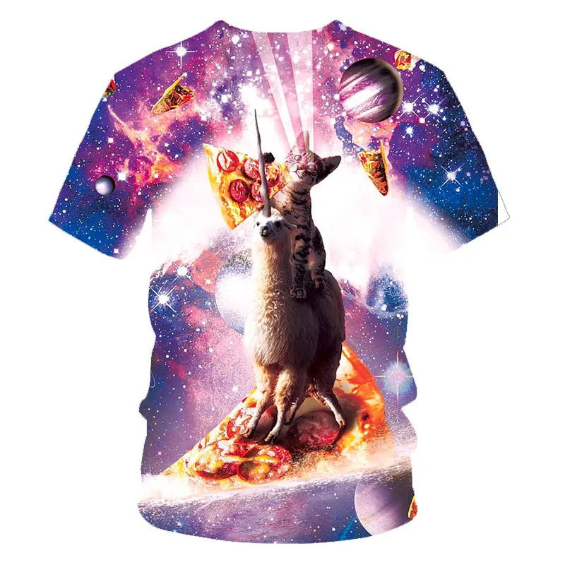 Новинка 2020, футболка с 3D изображением Галактики, Милые Забавные футболки с коротким рукавом и изображением котенка, кота, едят тако, пиццы, летняя футболка, футболка большого размера