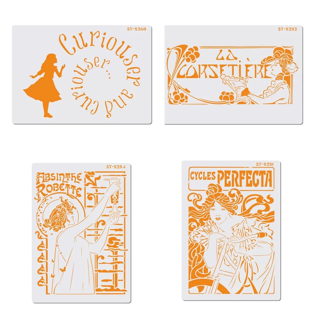 Трафарет для украшения стен, размер А4, 4 шт.компл., штамп для скра...