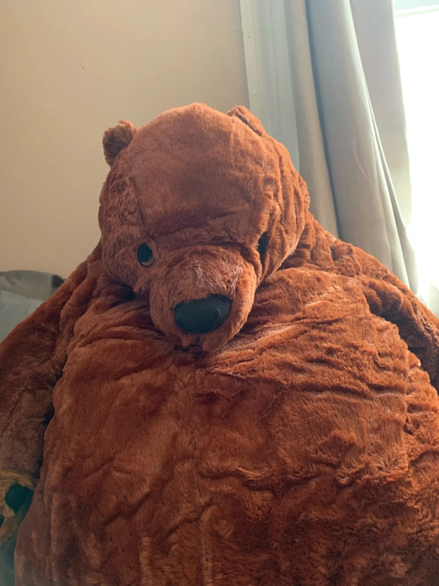 Очень красивый медведь, мягкий и без запаха, хорошо как подушка или диванная подушка, я куплю еще один для моего друга