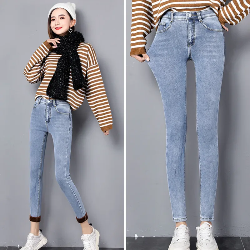 XIBUSANA 2020 зимние теплые бархатные джинсы женские джинсовые брюки утолщенные повседневные обтягивающие узкие брюки эластичные Стрейчевые узкие брюки