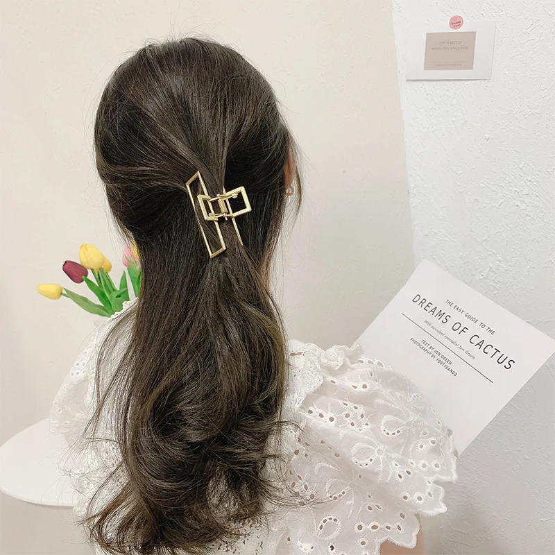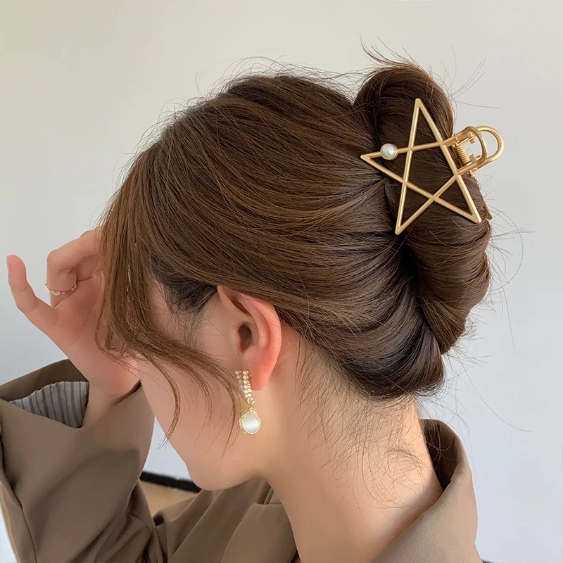 Зажим для волос HangZhi, металлический Краб для макияжа золотого цвета с геометрическими узорами, в форме ракушки, звезды, аксессуары для волос, 2020