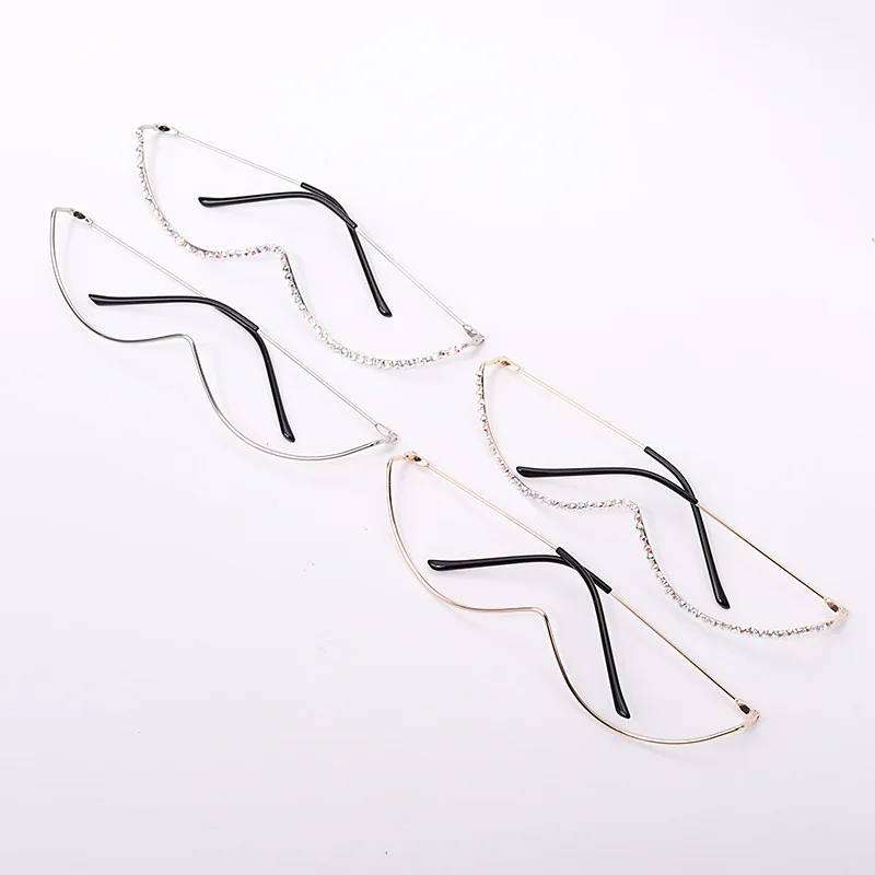 Алмазные Винтажные Солнцезащитные очки, оправа, стразы, изогнутые оправы для очков, женские Кристальные оправы для очков, женские и мужские украшения для очков