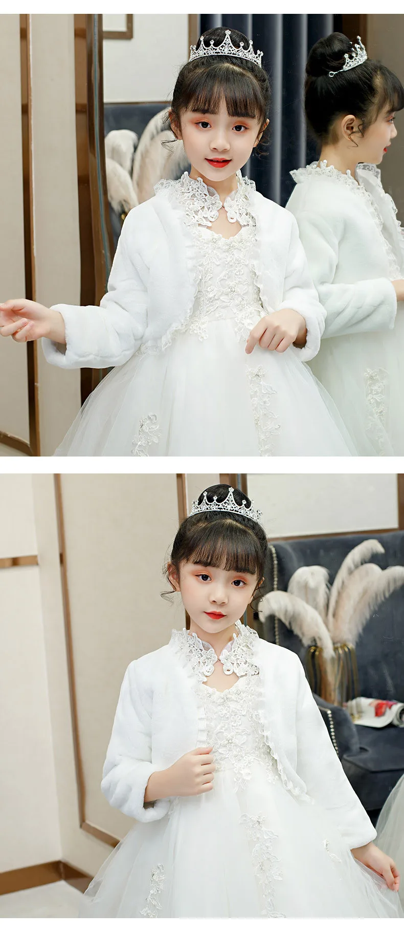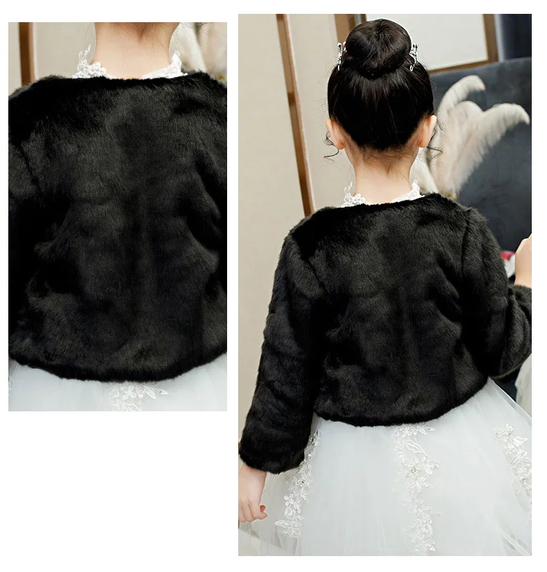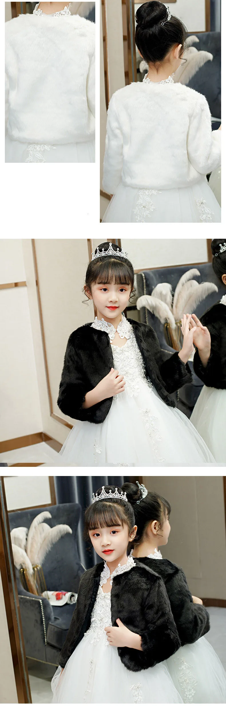 Черно-белая накидка из искусственного меха для детей, зимняя теплая одежда для девочек платье для свадебной вечеринки куртка-шаль болеро