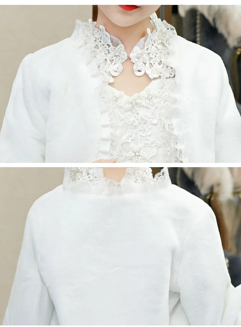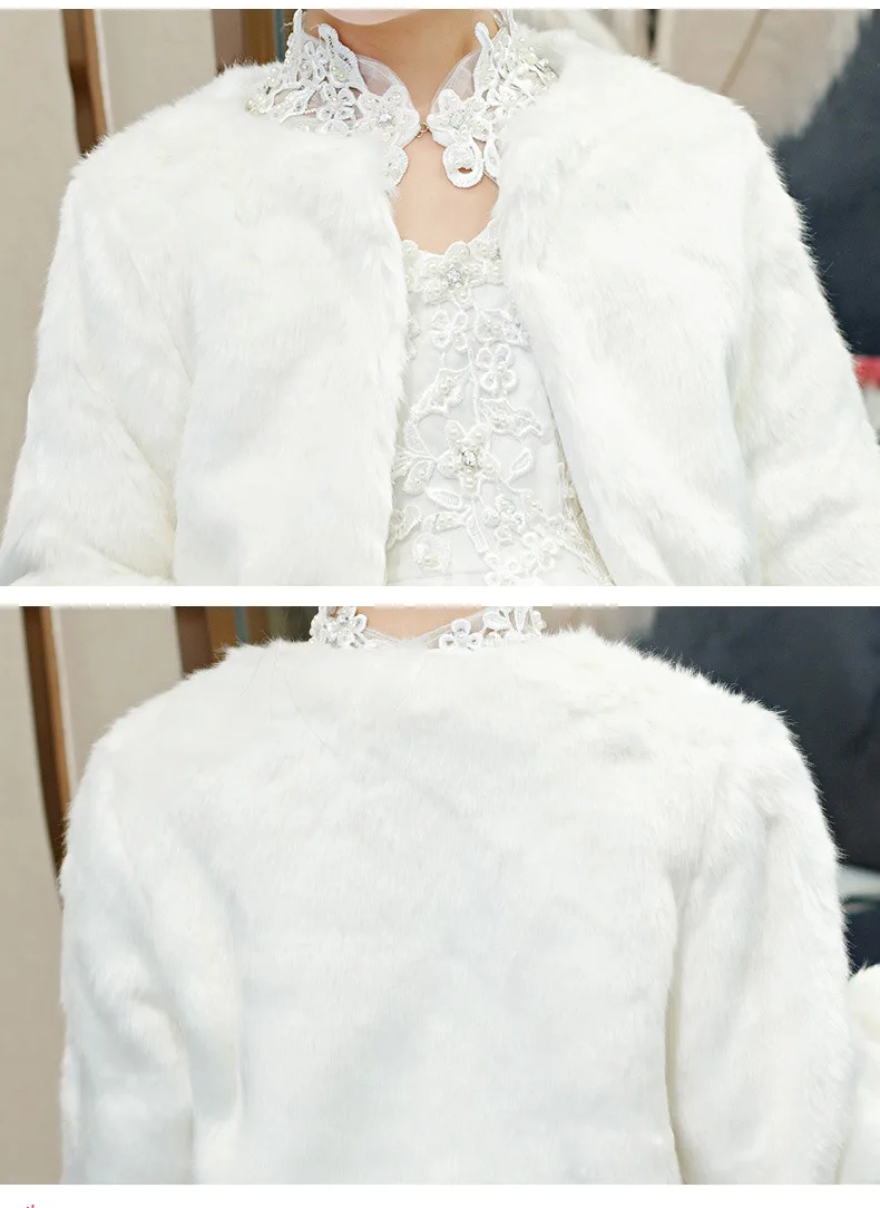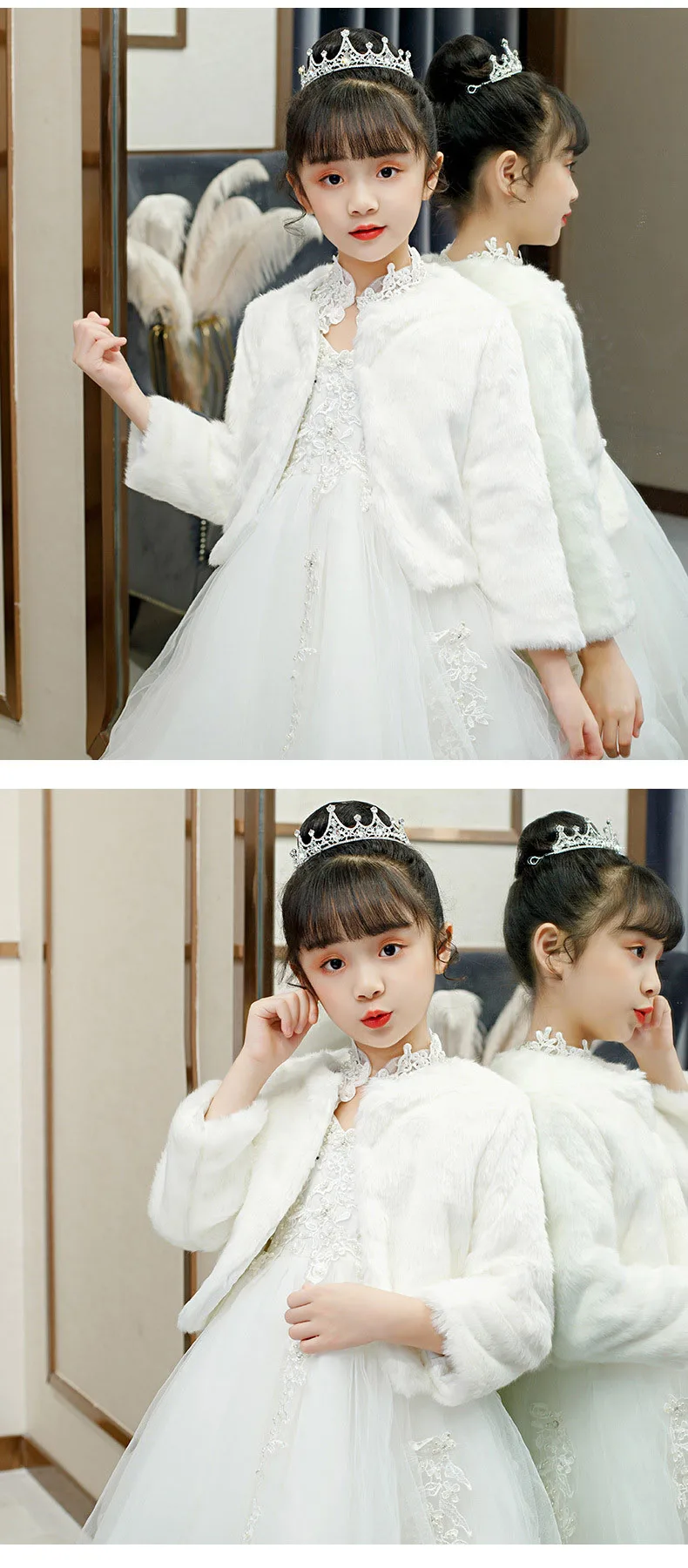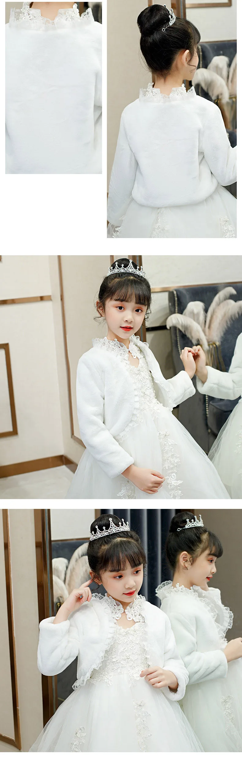 Черно-белая накидка из искусственного меха для детей, зимняя теплая одежда для девочек платье для свадебной вечеринки куртка-шаль болеро