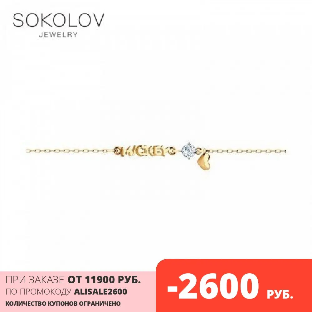 Браслет SOKOLOV из золота с фианитом, Золото, 585, Браслеты на руку, Оригинальная продукция