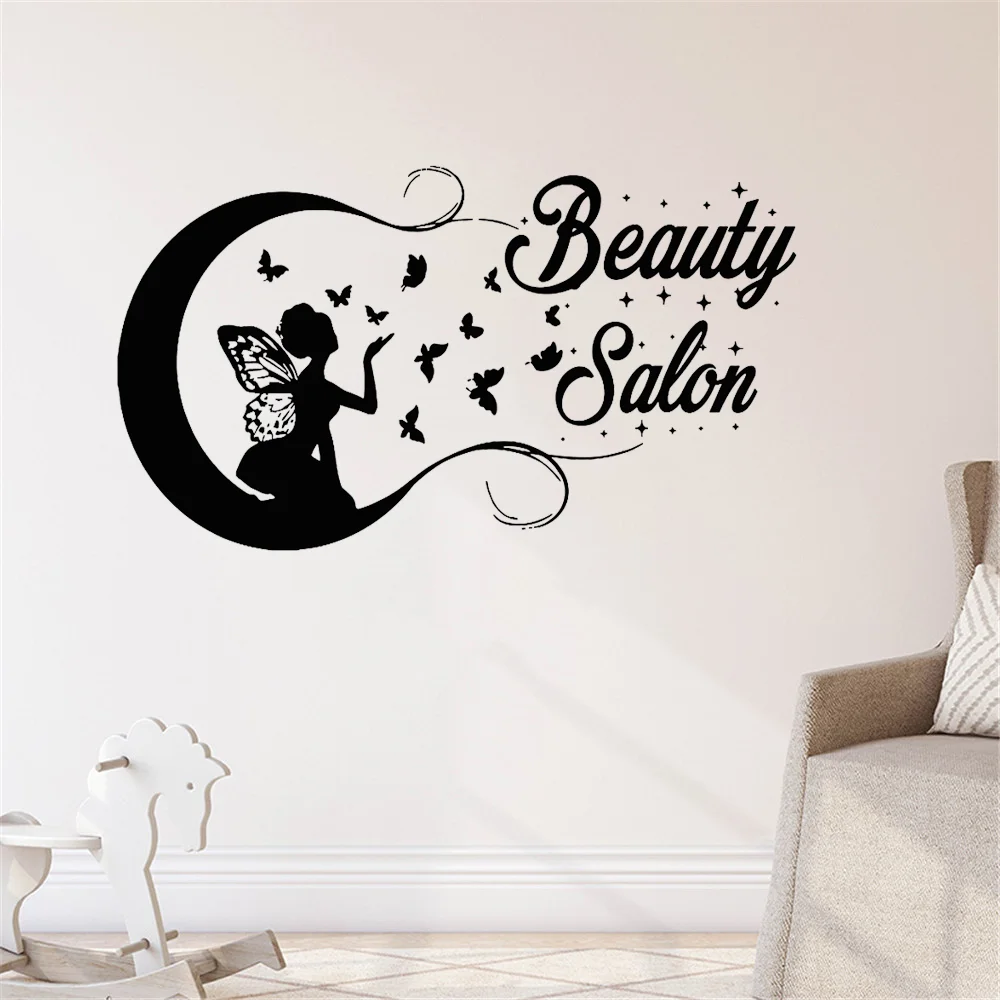 Бабочка девушка силуэт наклейки на стену салон красоты бабочки волосы виниловая наклейка на стену женщина Декор наклейки модные наклейки icon star icon star icon star icon star icon star