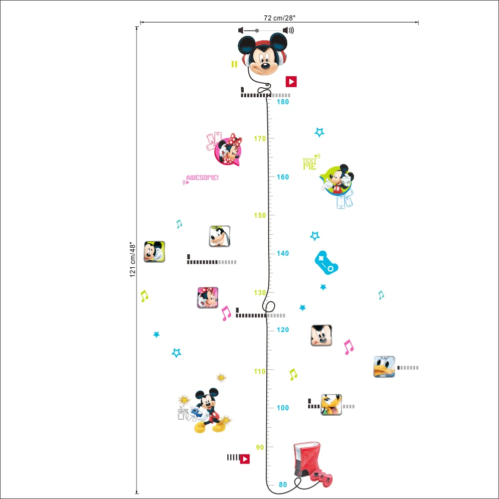 Дисней Микки Минни высота мерки ПВХ наклейки на стену для детской комнаты домашний декор мультфильм аниме Рост Диаграмма росписи искусство Сделай Сам постер