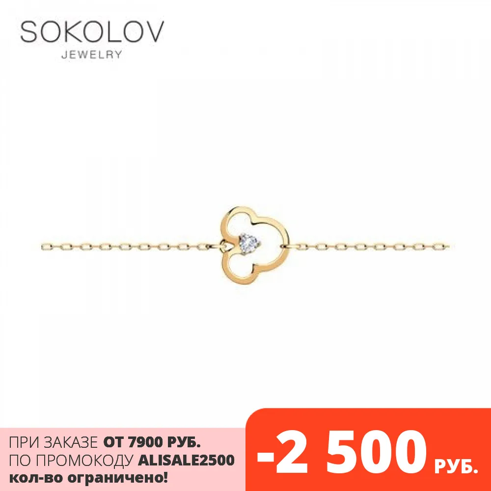 Браслет SOKOLOV из золота с фианитом, Золото, 585, Браслеты на руку, Оригинальная продукция