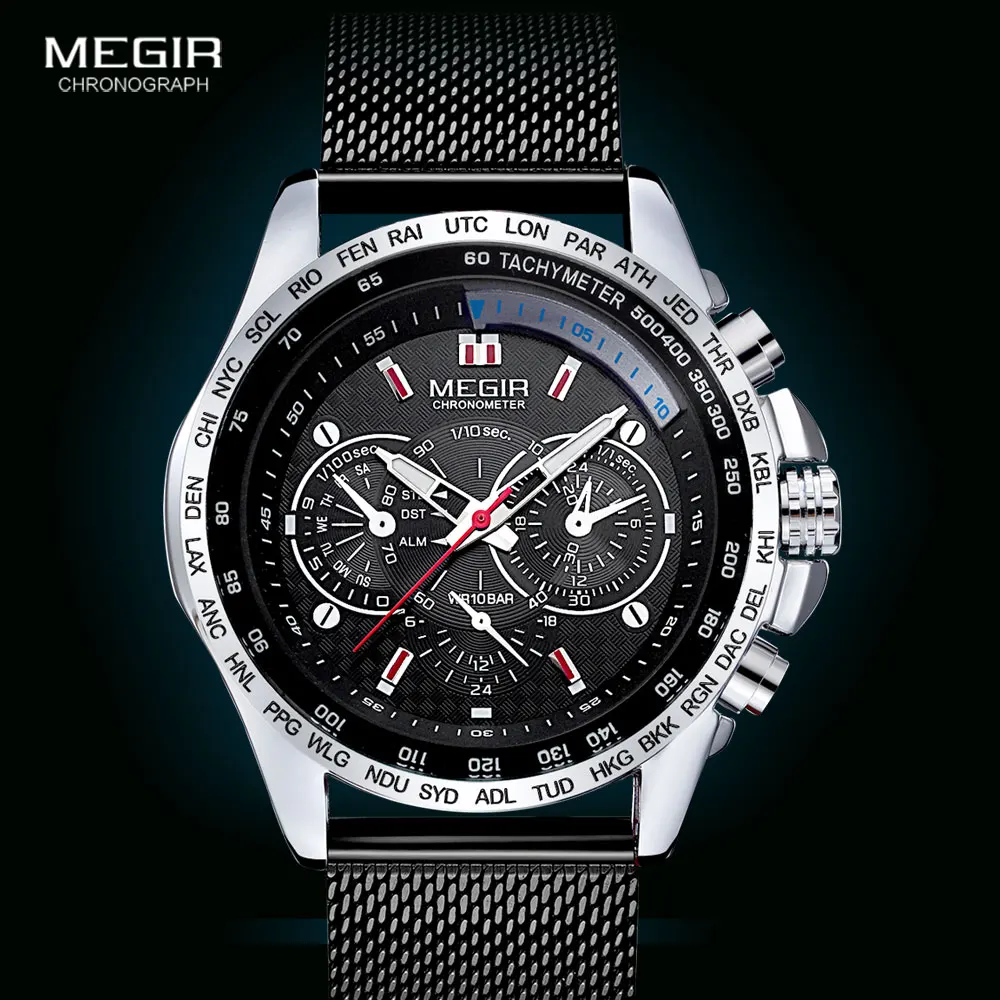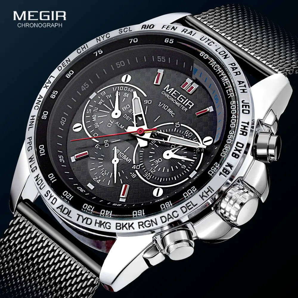 Часы мужские Кварцевые водонепроницаемые с сетчатым ремешком, с хронографом, 1010