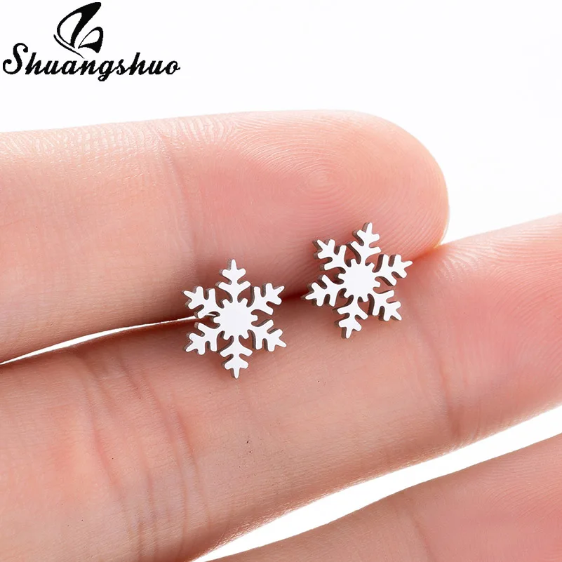 Новые модные серьги-гвоздики Shuangshuo в виде снежинок для женщин,...