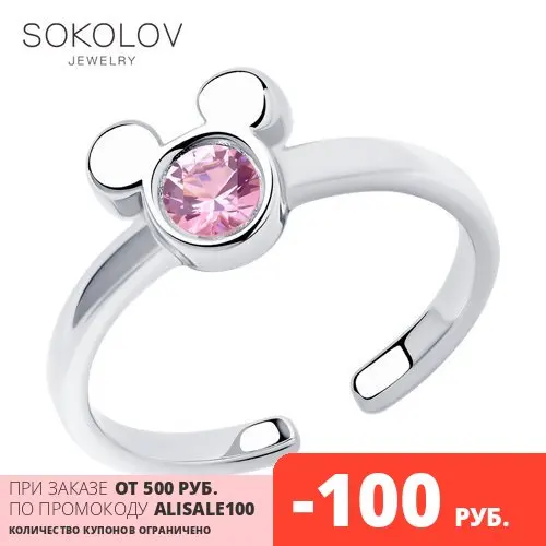 Кольцо SOKOLOV из серебра с фианитом, Серебро, 925, Детское, Оригин...
