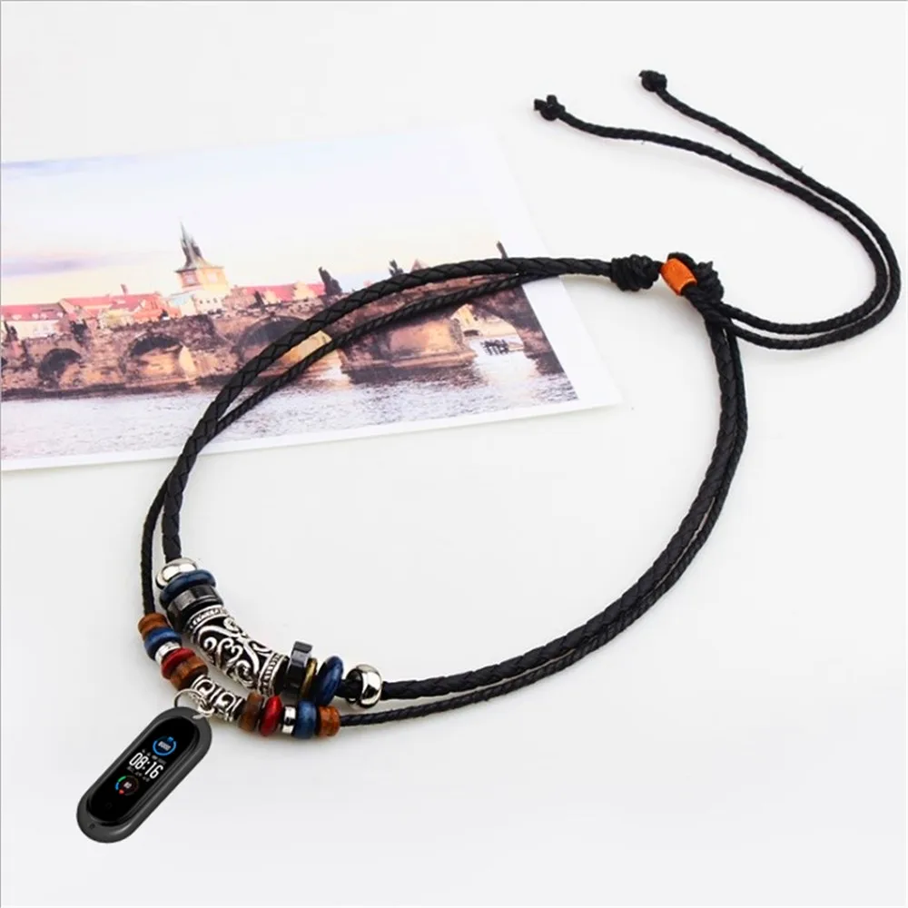 Ожерелье для Xiaomi Mi Band 345, браслет сделай сам, силиконовый вязаный винтажный кулон, регулируемый кожаный ремешок для mi band 5