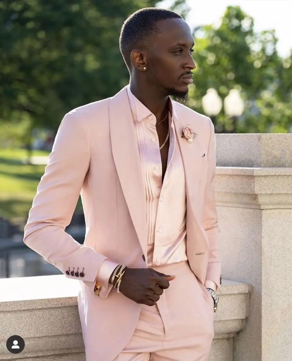 Костюм мужской из блейзера и брюк, роскошный пиджак с лацканами и розовой шалью, костюм-смокинг, облегающий костюм для свадьбы, 2 предмета