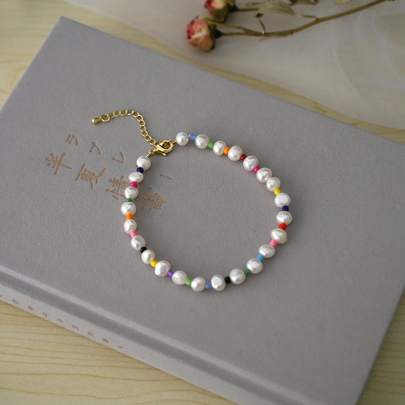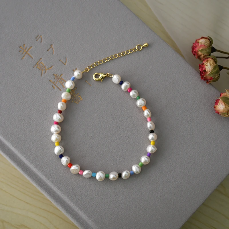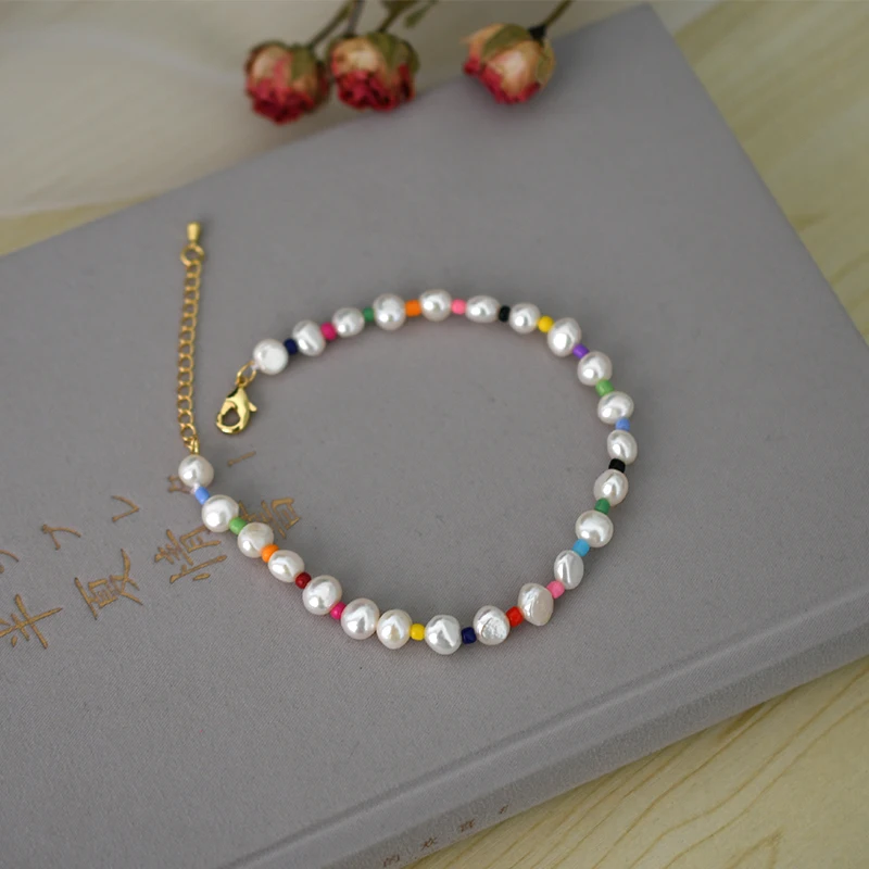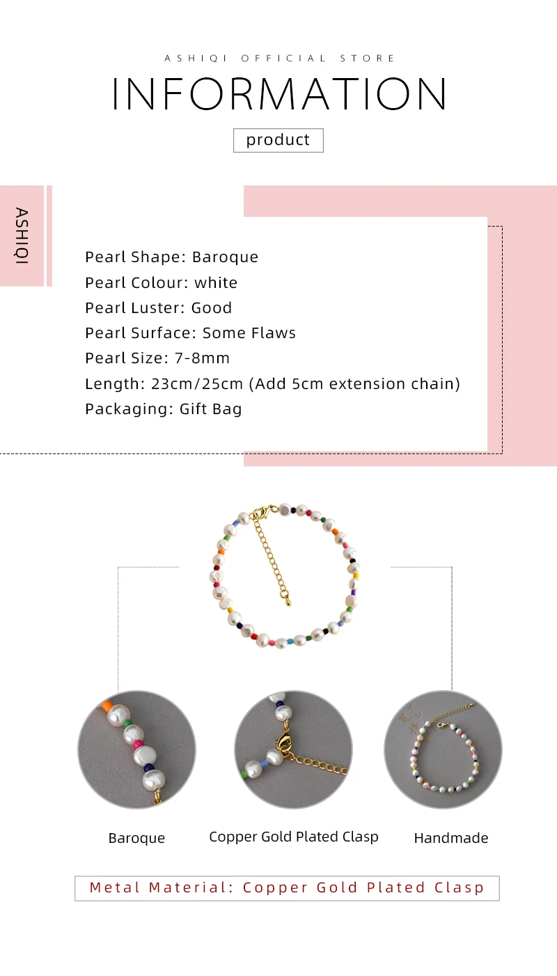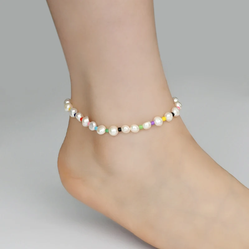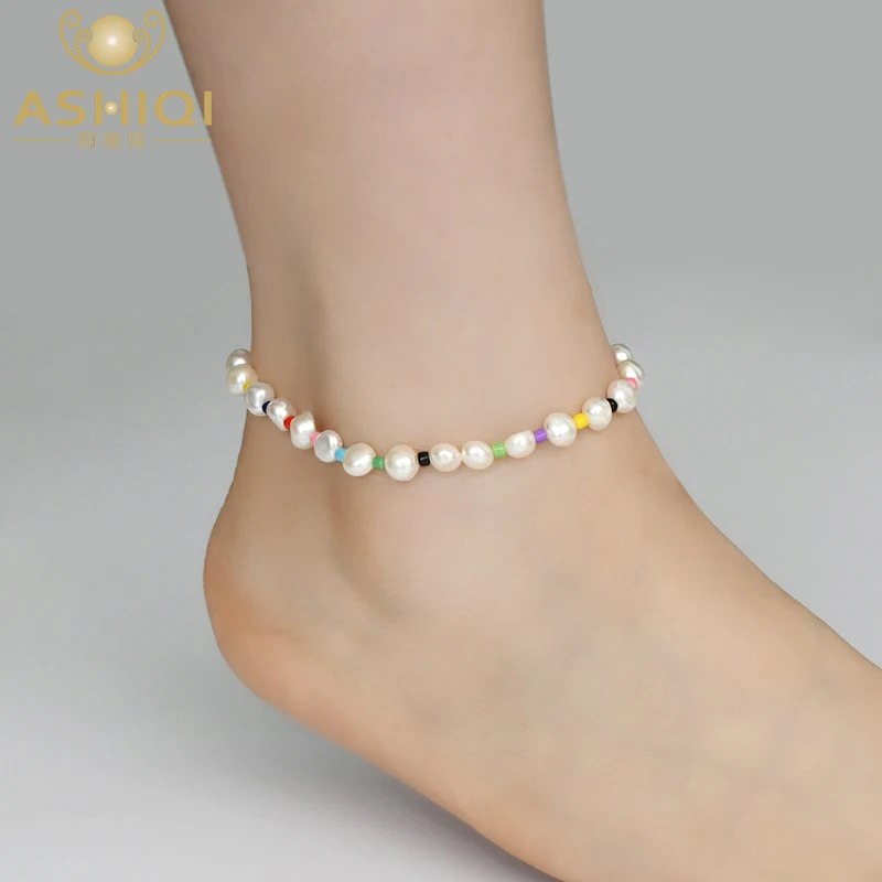 ASHIQI натуральная пресноводная жемчужный браслет для ног Женская мода ручной работы