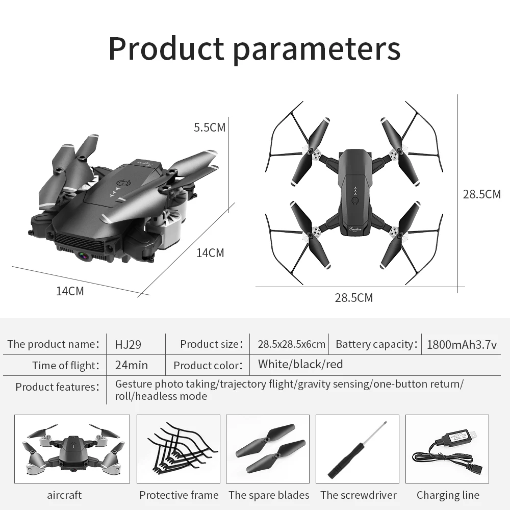 Название бренда: LozengeНомер товара. : HJ29Частота: 2,4GКанал: 4chГироскоп: 6 осейКвадрокоптер Батарея: 3,7 V литий-полимерный (все указанные аккумуляторы входят в комплект поставки)Передатчик Батарея: 3x1,5 AA Батарея (не входит в комплект)Время зарядки: 60-70 минутВремя полета: 16-20 минутВес дрона: 94,8 г (с батареей)Расстояние R/C: 150 мЦвет: черный, белый, красныйКамера: 1080P/4K широкий угол (опционально)Четырехъядерным процессором, Размеры: 28,5x28,5x5,5 см (в разложенном виде)В сложенном виде Размеры: 14x14x5,5 см (руки в сложенном виде)Особенности:-Складные руки, малый размер, легко носить с собой.-С функцией удержания высоты обеспечивает стабильный полет.-С функцией Wi-Fi можно подключать приложение, систему APK для съемки, видео, передачу в режиме реального времени через Изображение камеры телефона.-Есть 3 камеры на выбор. Широкоугольная камера 720P/1080P/4K обеспечивает широкий диапазон фотографий и видео.-С безголовым режимом, не нужно регулировать положение самолета перед полетом.-Функция возврата с одним ключом позволяет легко найти дорогу домой.-2,4 ГГц Технология, принятая для защиты от помех.-4 канала, который может сделать Ascend, спуск, вперед, назад, левая бока, правая бока и прокатки 360 °.-6 оси гироскопа, который может иметь более стабильный полет и быть простым в управлении.-Он имеет 3 уровня скорости полета для переключения, которая может сделать больше удовольствия с летящим.-Фюзеляж квадрокоптера изготовлен из высокопрочного и стойкого инженерного пластика, легкого и прочного сопротивления.Функция: вверх/вниз, вперед/назад, поворот влево/вправо, поворот влево/вправо, бока, f светильник, 3 уровня f светильник скорость, светодиодный светильник, Безголовый режим, автоматический возврат одним нажатием кнопки, режим удержания высоты, WiFi FPVПосылка включает в себя:1 x Квадрокоптер Lozenge HJ29 RC1 передатчик (аккумулятор не входит в комплект)1x3,7 V Lipo Батарея (можно выбрать Батарея количество при размещении заказа)1 х USB кабель для зарядки4 x защитный чехол4 запасных лезвия1 отвертка1 x Руководство пользователя