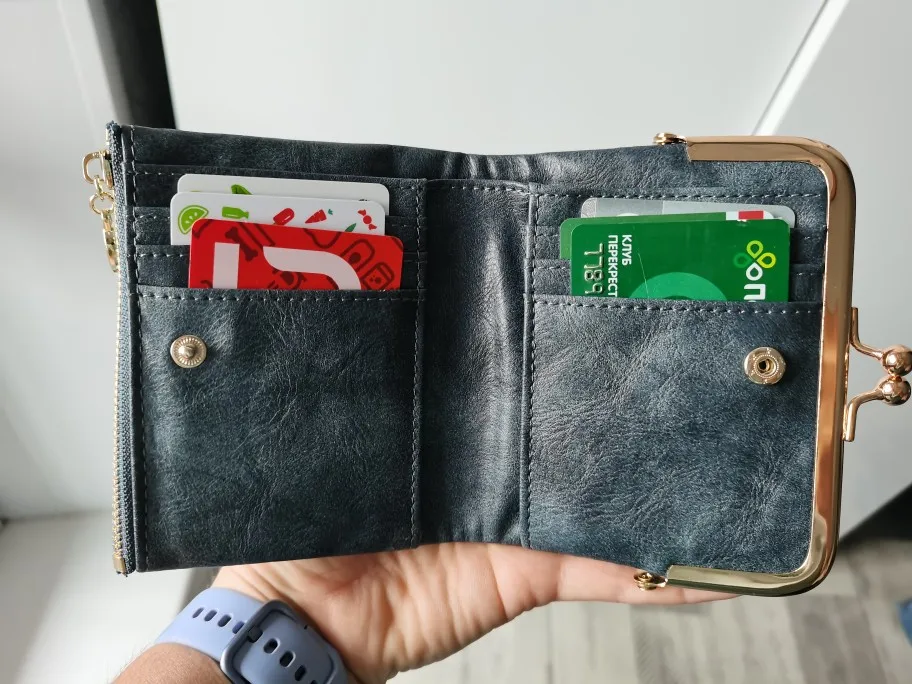 Не кожа, в лучшем случае прессовка. Заказала на подмену, для маленькой сумочки, партмоне не вмещающей. Довольна. Доставка месяц, с продавцом не общалась.