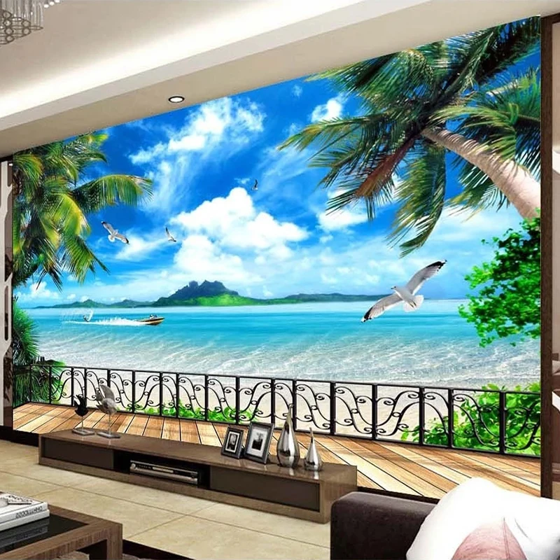 Пользовательские 3D Настенные обои современный Пляжный Пейзаж для балкона наружное окно вид на море настенная живопись Гостиная ТВ обои на стену за диваном