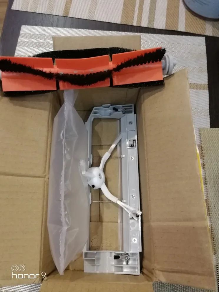 Доставка до Москвы 15 дней. Без картонной упаковки, только пупырчатый пакет, но все целое. Подошли к Xiaomi RoboRock S55 (Black) идеально. Жесткость щетины и силиконовых лепестков аналогична оригиналу. Боковые белые колесики для чистки и удаления намотанных волос снимаются руками поворотом по оси щетки: - со стороны подвижной опоры оси - по часовой стрелке. Сама опора также отщелкивается; - со стороны неподвижной опоры-кубика - против часовой стрелки. На последних фото видно направляющие. Собирается щетка в обратном порядке. Подвижная опора защелкивается самостоятельно. По такой цене - рекомендую!