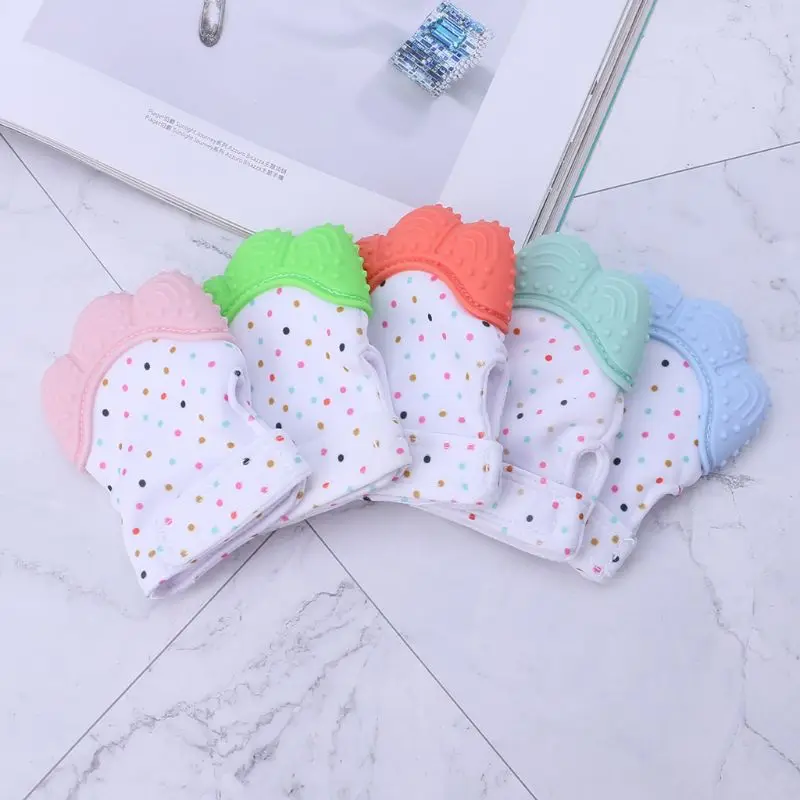 Детские Безопасные бриллиантовые перчатки, мультяшный пончик, детский пищевой силикон, жевательные бриллиантовые перчатки