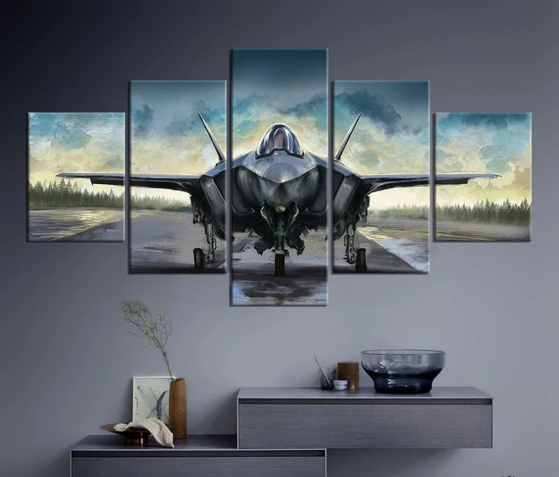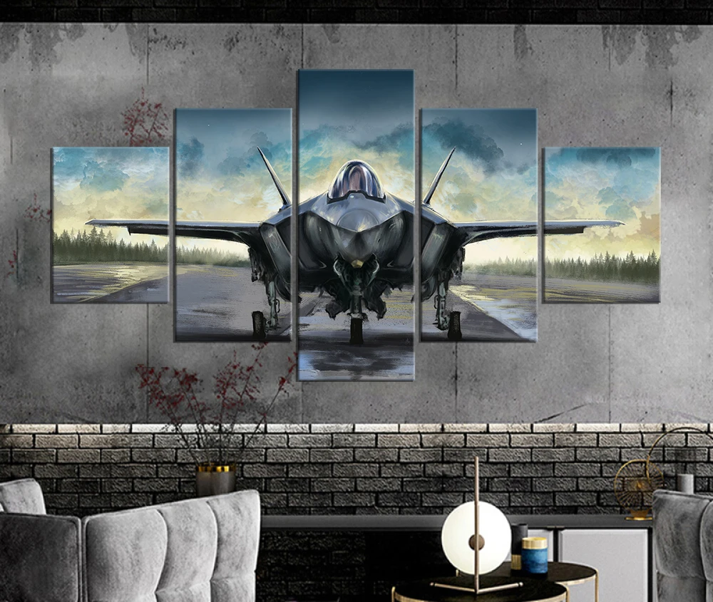Модульная Картина на холсте для домашнего декора, 5 шт., F-35A, картина с изображением истребителя "молния II", постер для комнаты, Настенная картина для дома