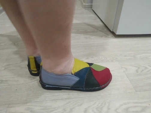 Туфли очень смешные, но удобные на широкую проблемную ступню. Размер нужно брать ориентируясь только на СМ ступни, т.к. по российским размерам маломерят.