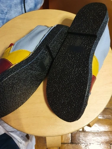 Доставка быстрая, кожа натуральная, цвета не соответствуют (слишком яркие), сделаны топорно. Размер описан правильно, идут четко в размер, на широкую ногу. Мне оказались велики, придётся пристраивать в хорошие руки))