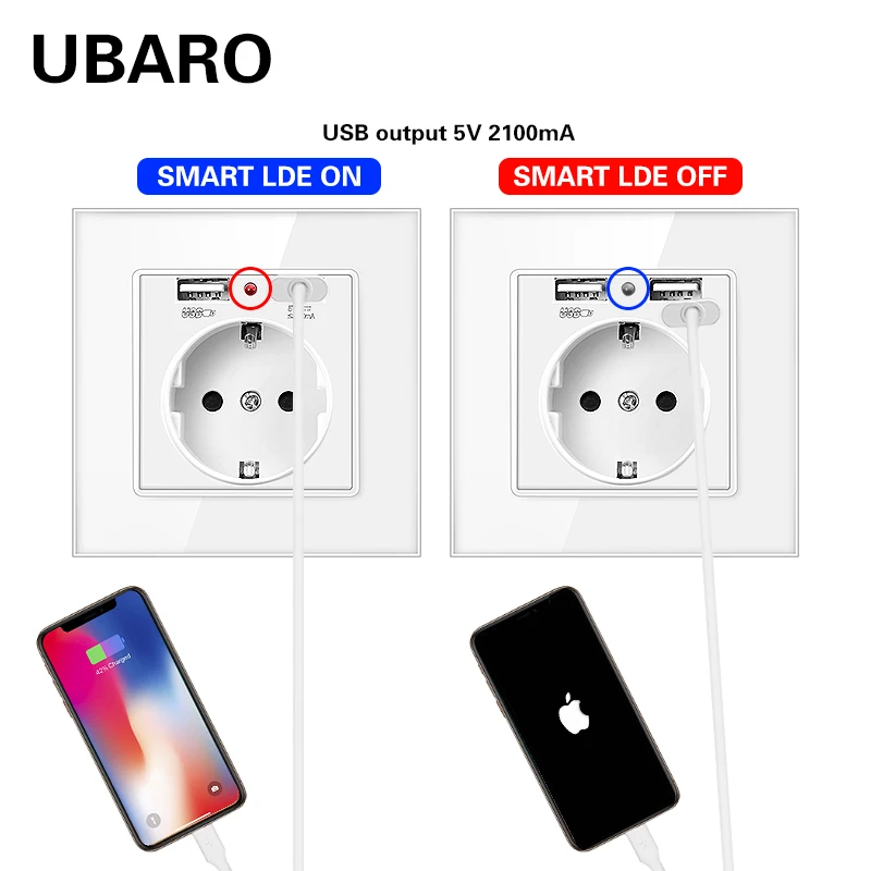 UBARO 146*86 мм стандарт ЕС DE RU настенная розетка из хрустального стекла с Usb 5 в 2 А электрическая розетка для дома AC110-250V 16A