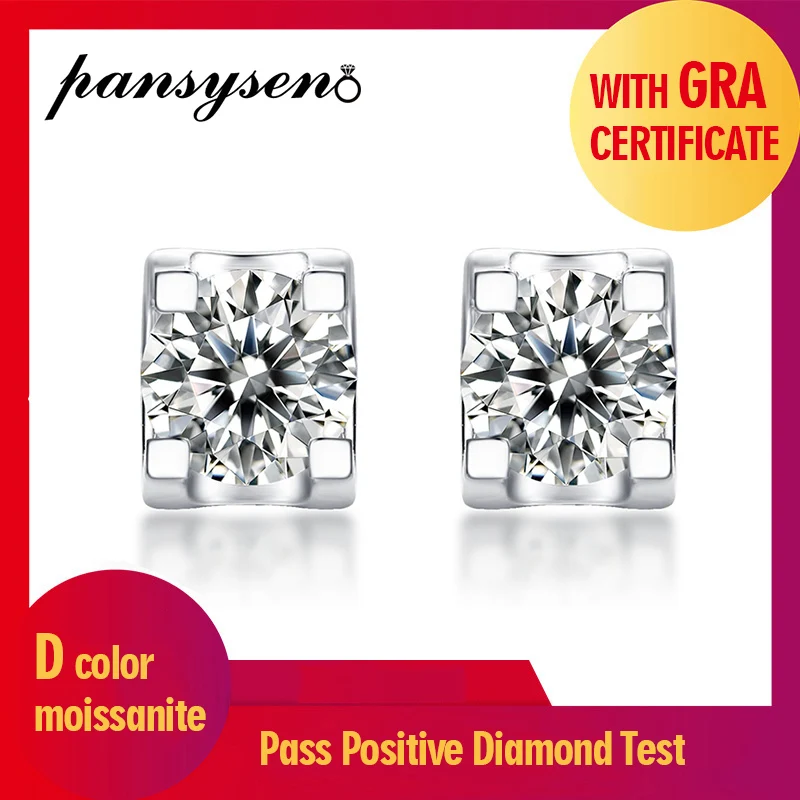 PANSYSEN 100% 925 стерлингового серебра 0,5-1CT D Цвет настоящий Муассанит, серьги со шпилькой, для женщин, роскошные свадебные ювелирные украшения оптом