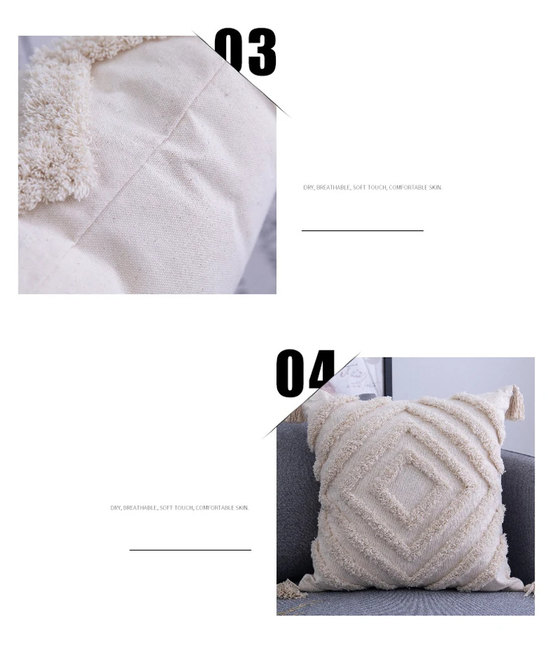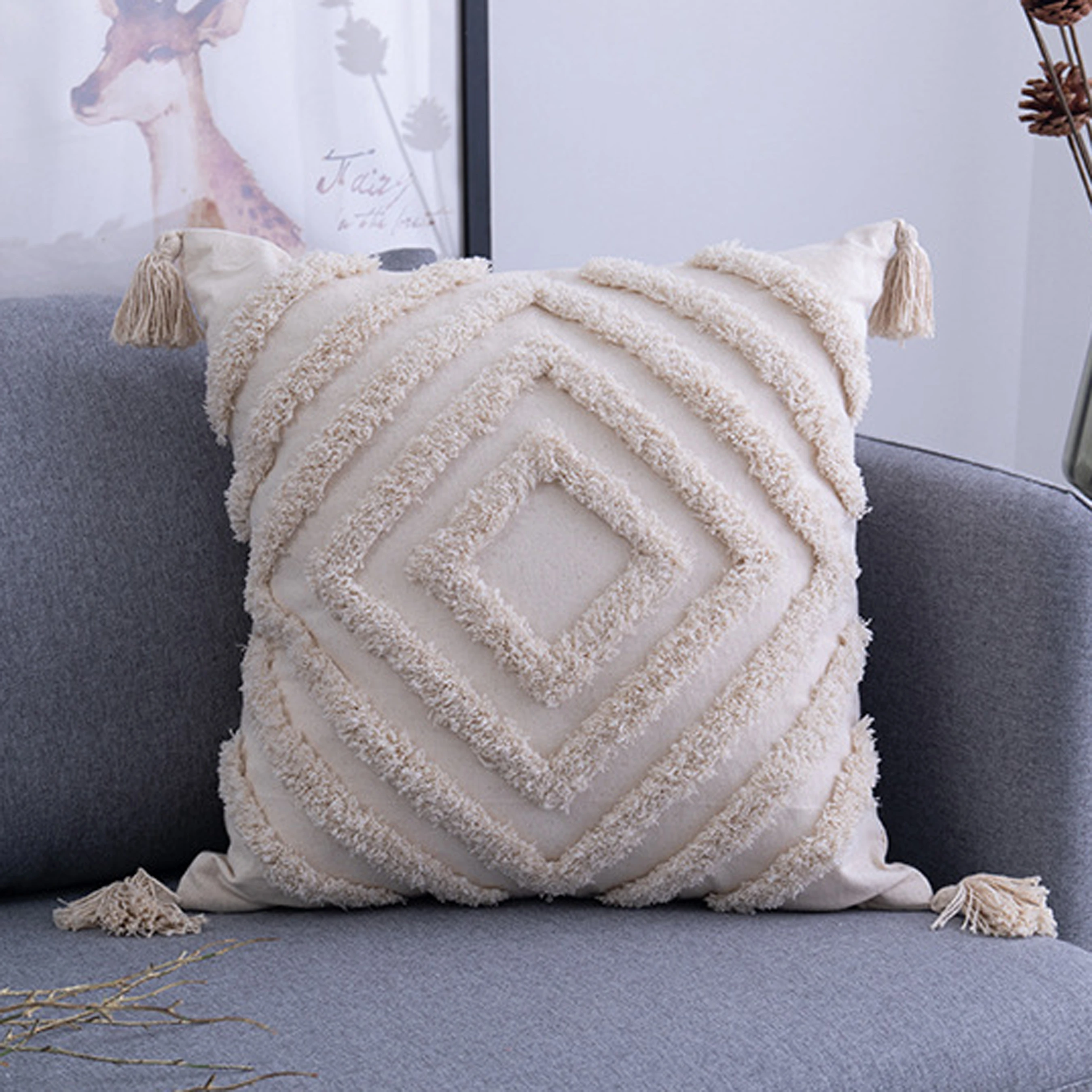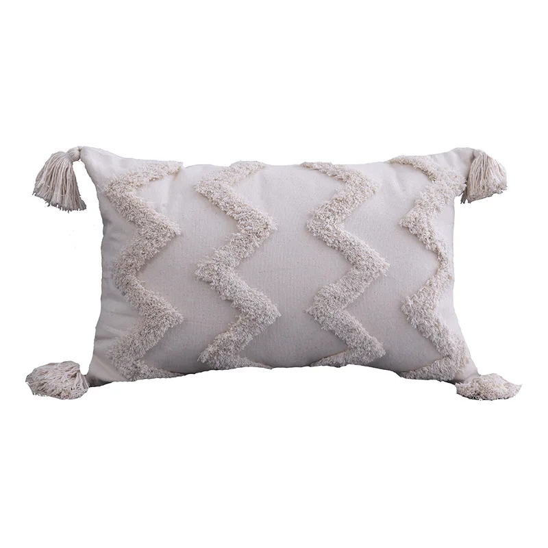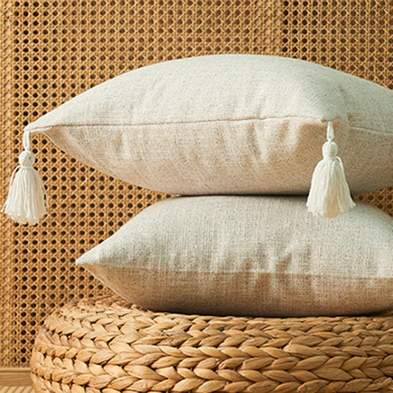 Хлопковый чехол для подушки с кисточками, марокканская подушка в стиле бохо, ворсовый чехол в скандинавском стиле, бежевое домашнее украшение ручной работы для дивана, гостиной