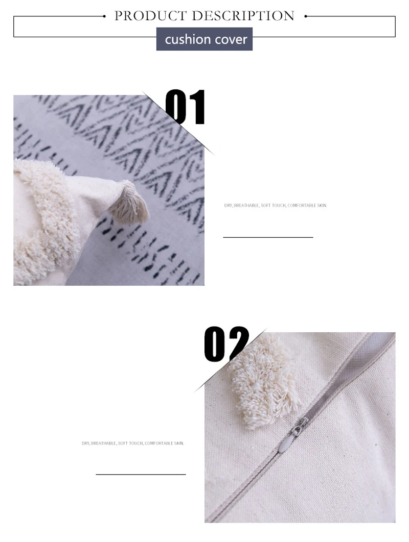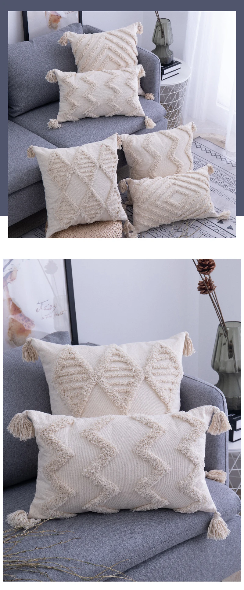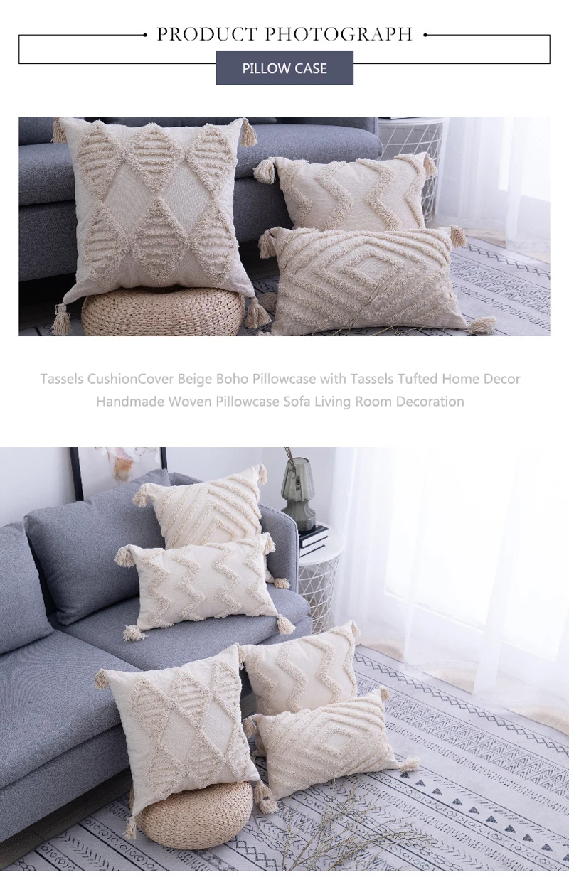Хлопковый чехол для подушки с кисточками, марокканская подушка в стиле бохо, ворсовый чехол в скандинавском стиле, бежевое домашнее украшение ручной работы для дивана, гостиной