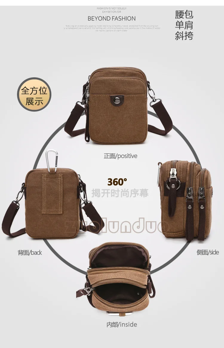 Многофункциональная холщовая мини-сумка-слинг через плечо, сумка-ме...