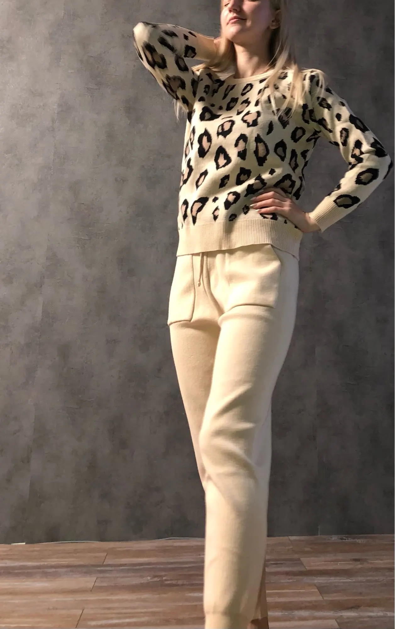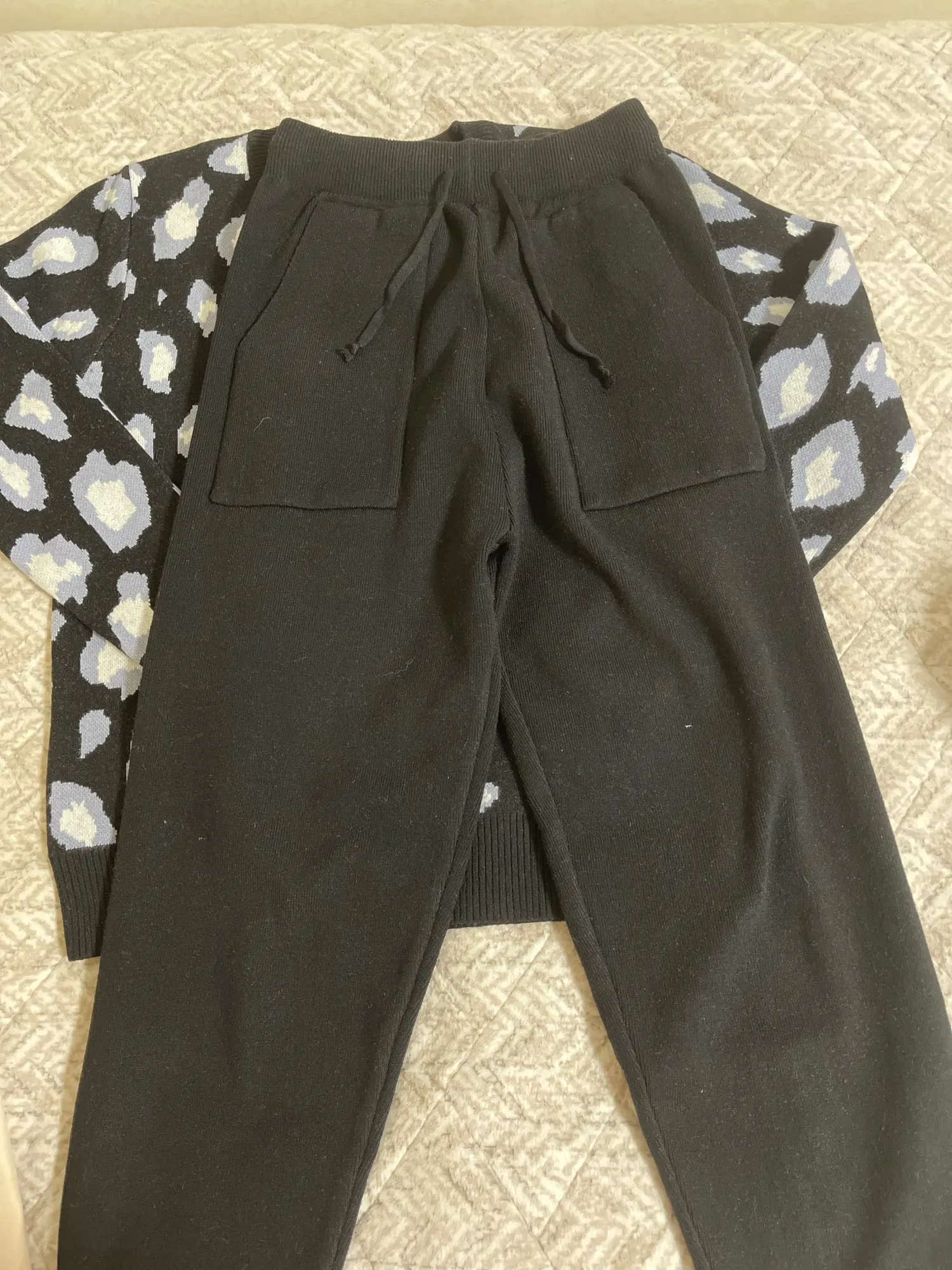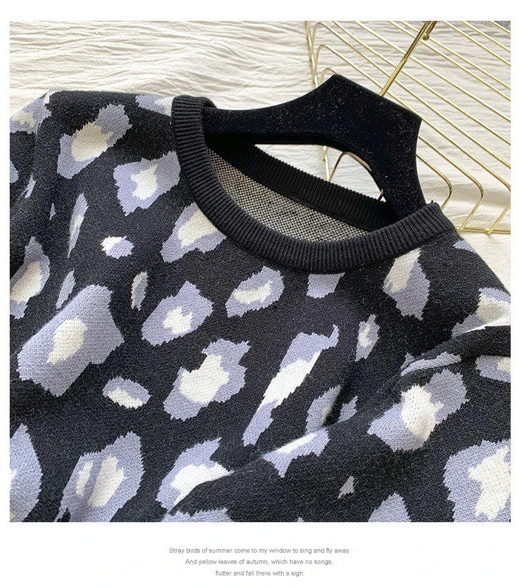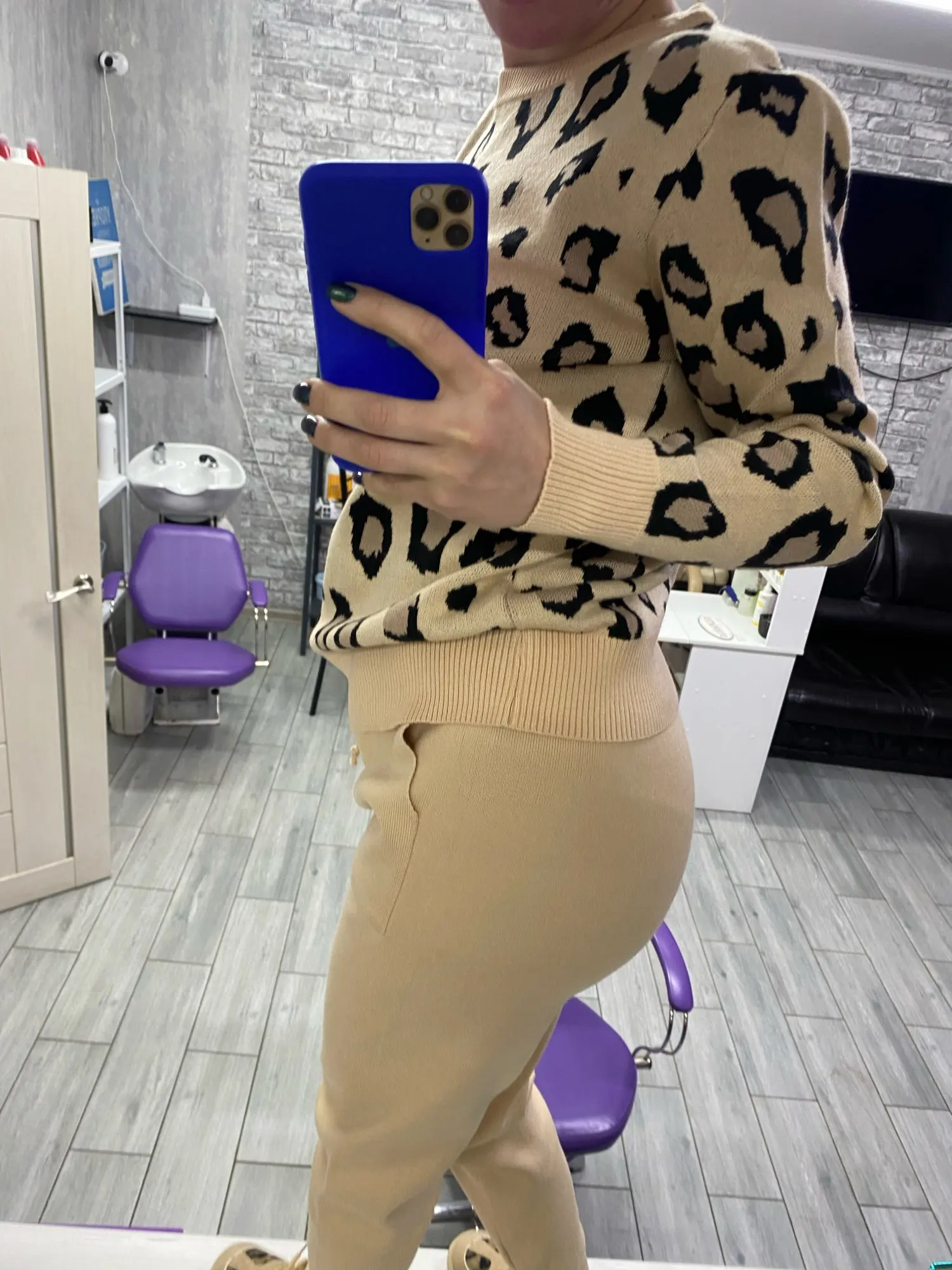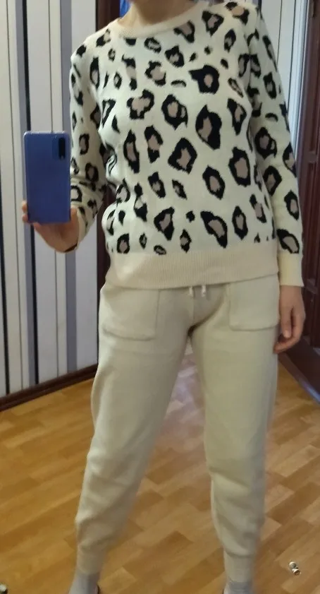 Женский трикотажный пуловер SMTHMA с длинным рукавом и леопардовым принтом, свитер + штаны с эластичной резинкой на талии, модные брюки, костюм из двух предметов