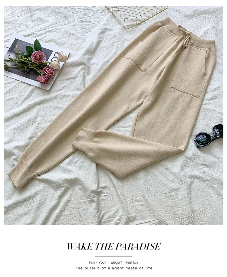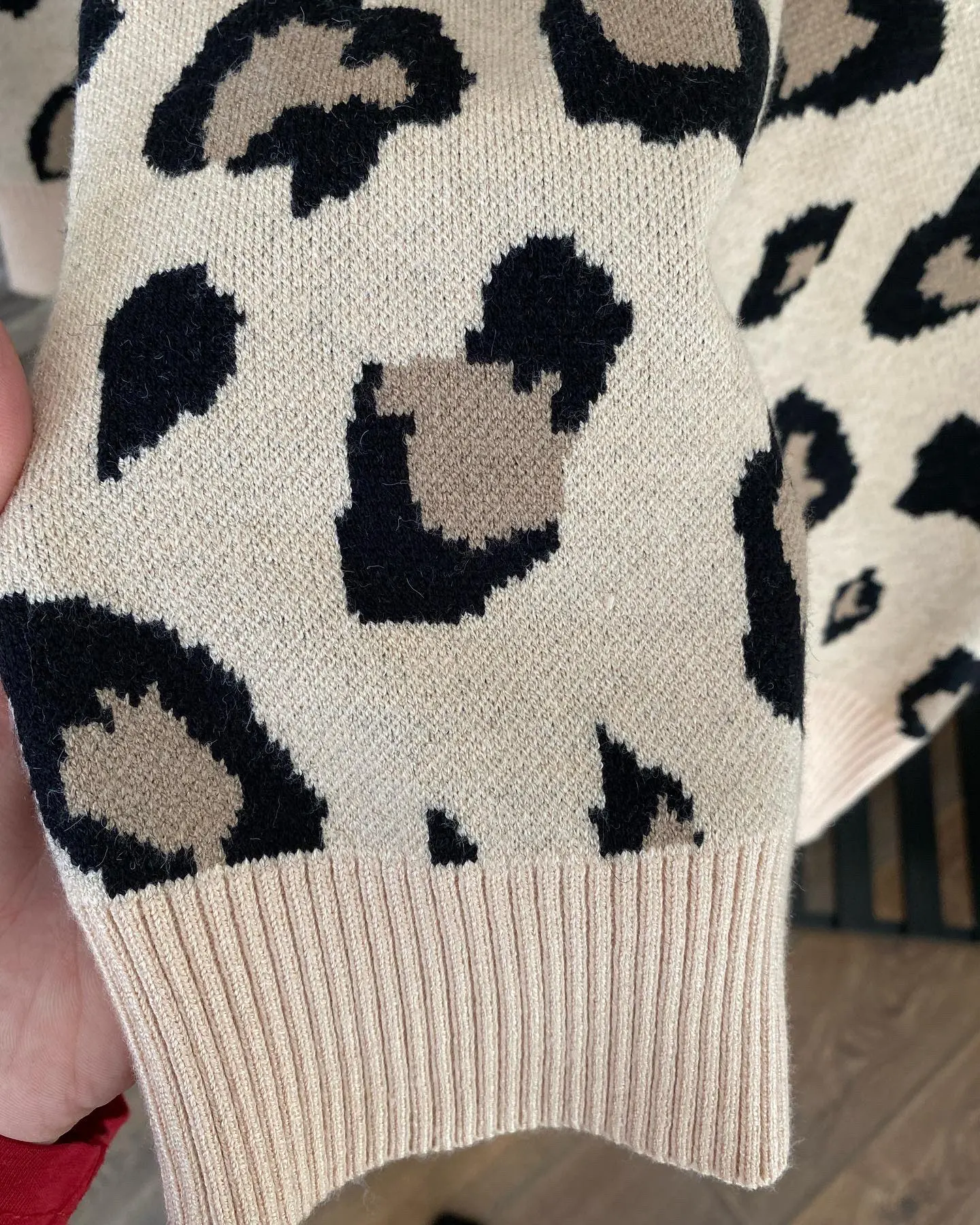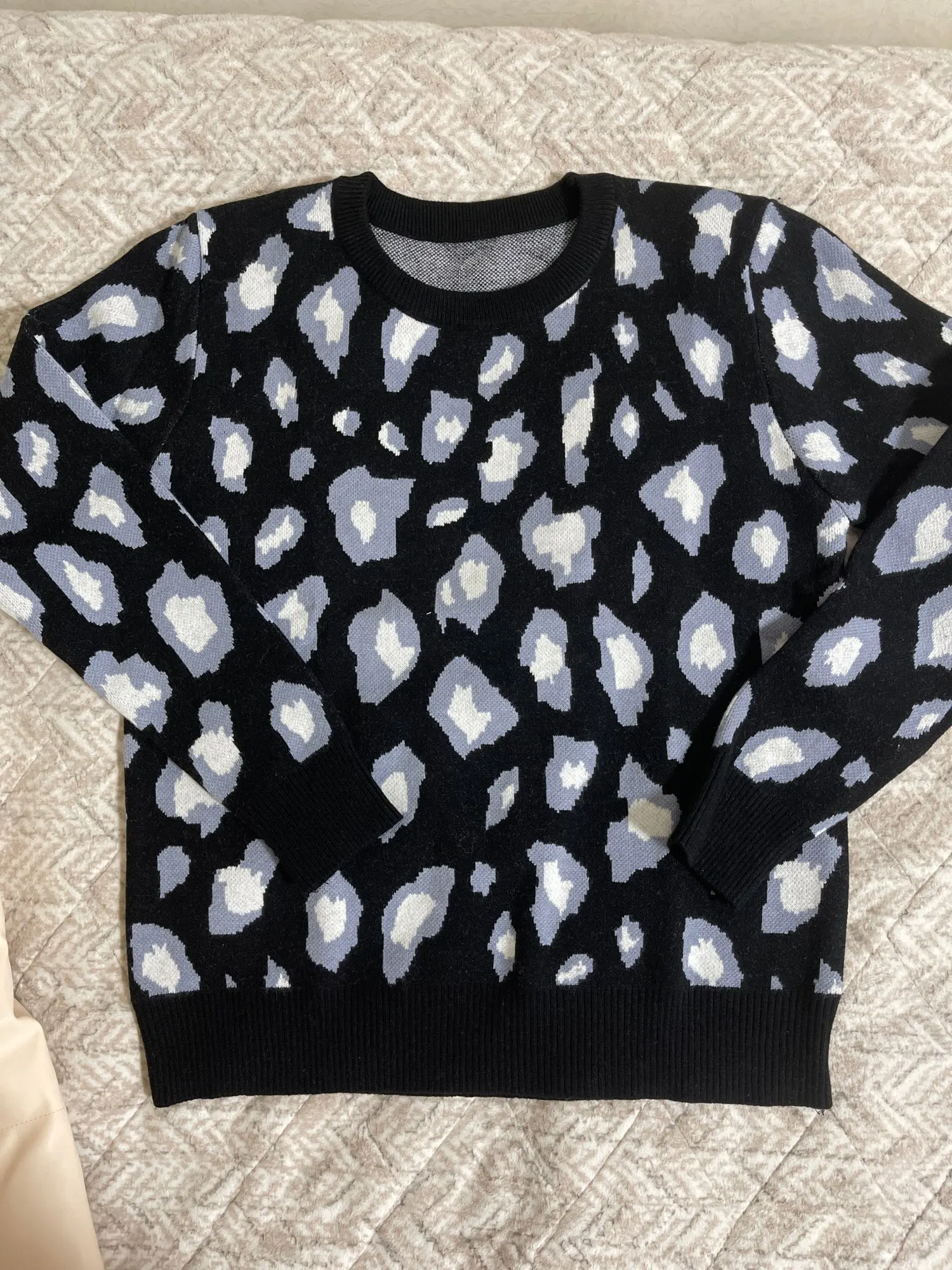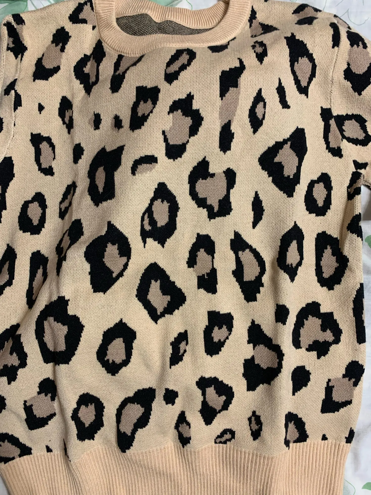 Женский трикотажный пуловер SMTHMA с длинным рукавом и леопардовым принтом, свитер + штаны с эластичной резинкой на талии, модные брюки, костюм из двух предметов