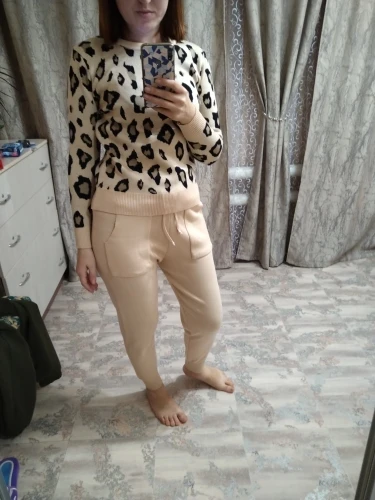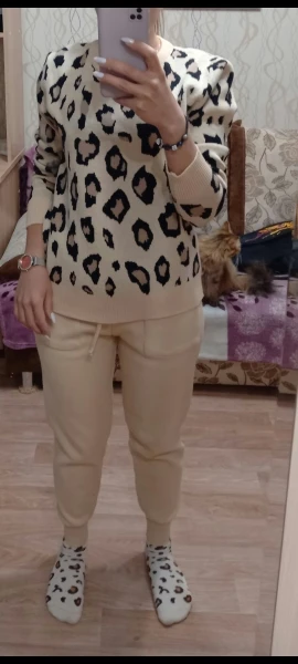 Отличный костюм. Качество ткани приятное, мягкая не колющаяся шерсть в сочетании с другими материалами. На рост 163 длина подошла, на высоких девушек будет коротковато, поэтому берите на размер больше. Немного смутила посадка штанов, слишком высокая. А так очень понравился костюм, идеально подойдёт на холодную погоду